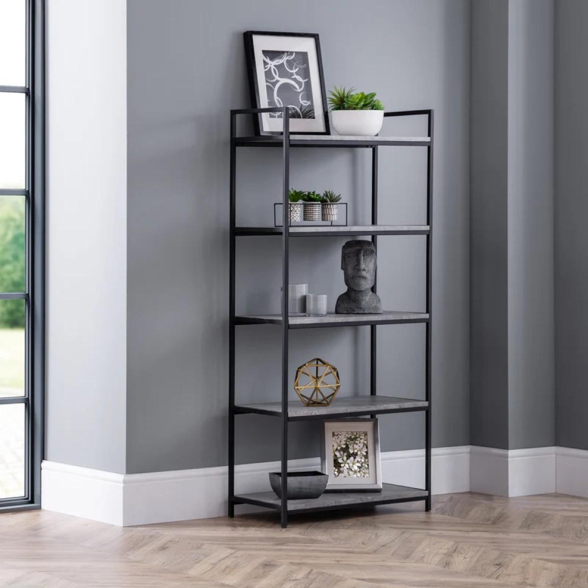 Julian Bowen Staten Tall Concrete Bookcase In Grey/Black