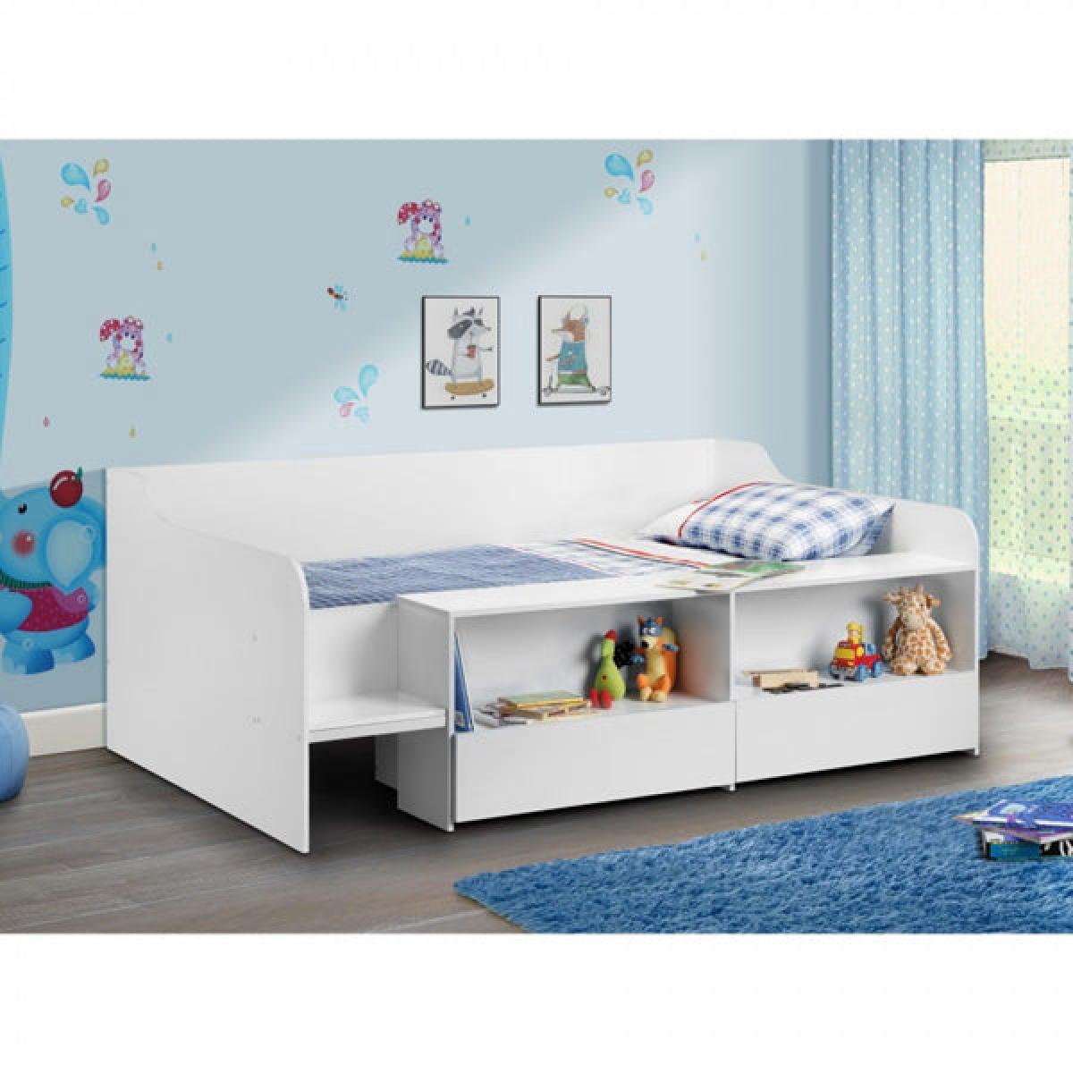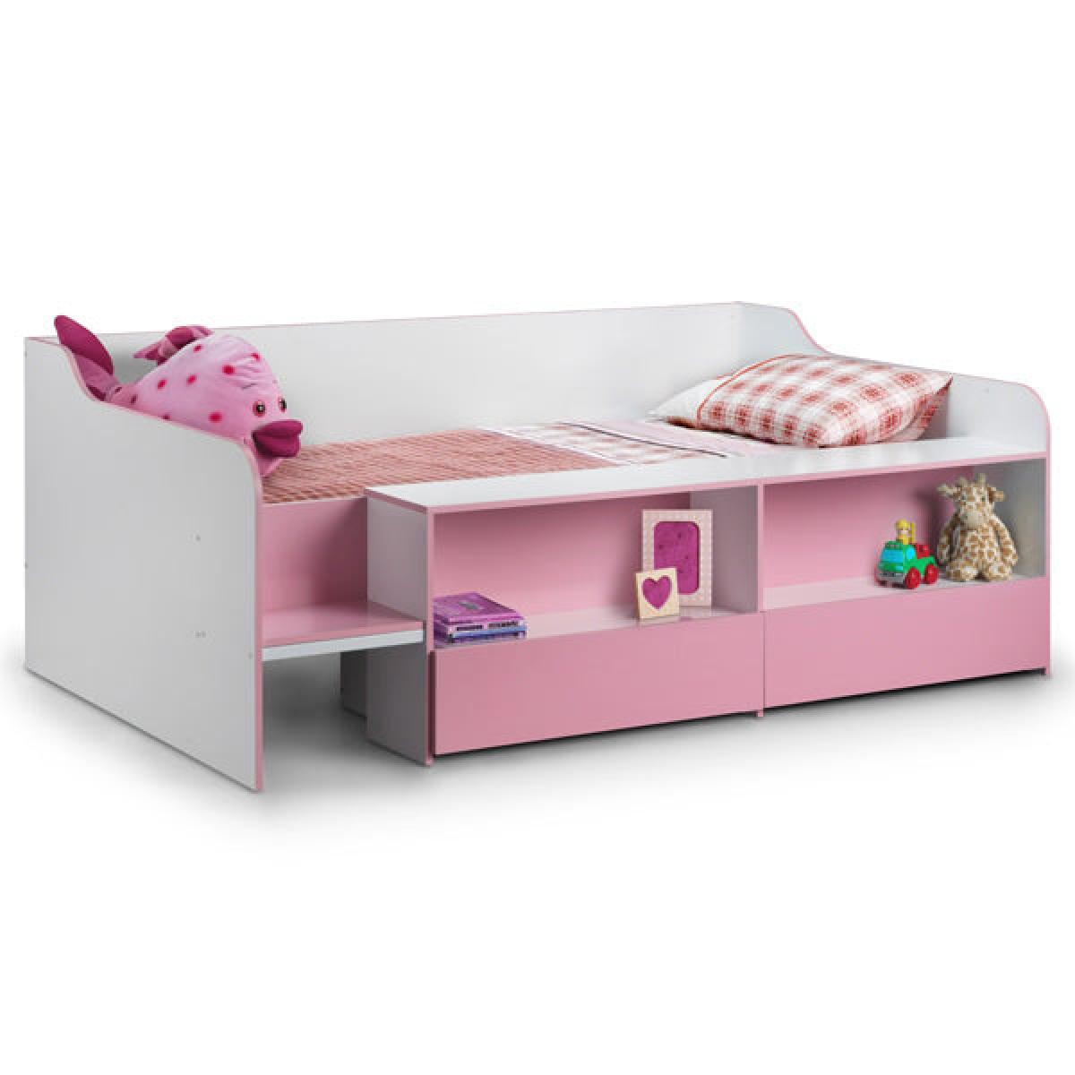 The Stella low sleeper is a great saving solution for any bedroom. Featuring 2 pull-out drawers on castors and uselful shelving, suitable to hide your kids mess! Crafted from particleboard with foil and powder coated steel, this bed is available in pure white, blue or pink suitable for a range bedroom decor! Coordinating with the Julian Bowen Domino bedroom range, why not complete your kids bedroom today!.
