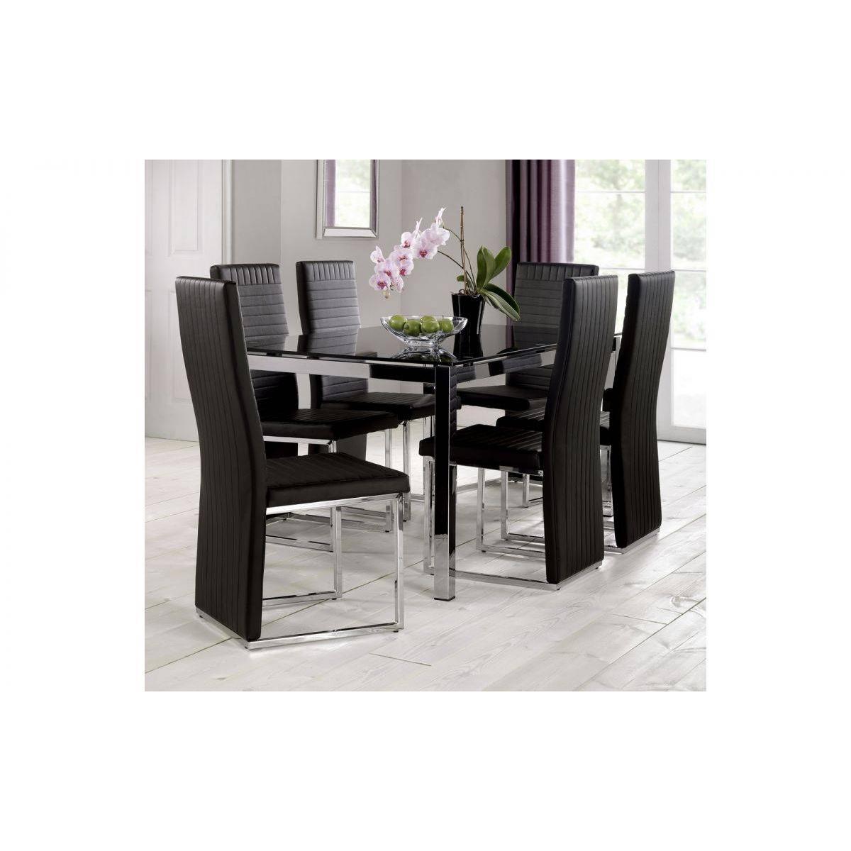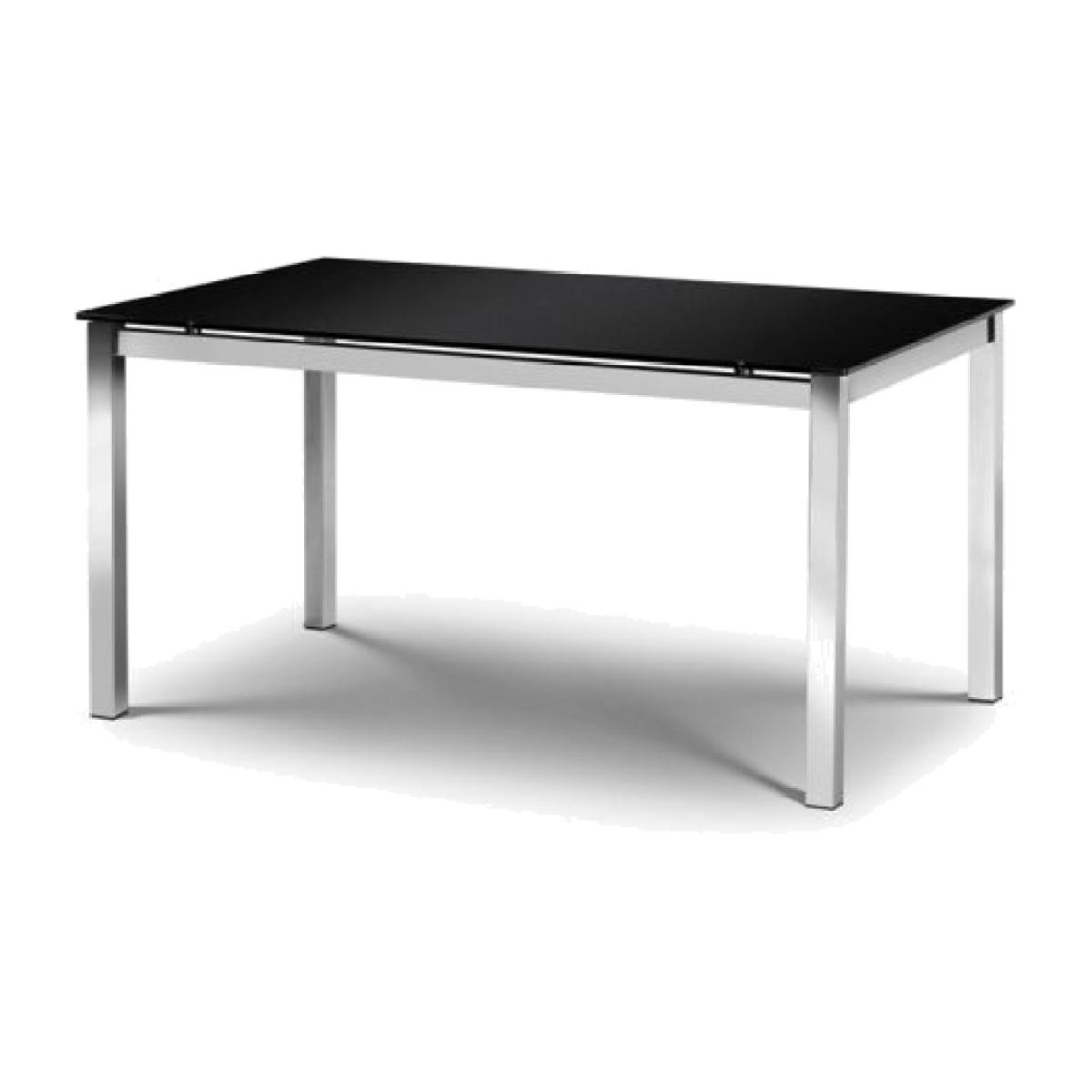 This contemporary dining table from Julian Bowen is part of the Tempo range and will go brilliantly with the Tempo dining chairs. This sophisticated table is a combination of chrome and black tempered glass. Dimensions: 160cm (W) x 90cm (D) x 75cm (H) Assembly required 1 Year Manufacturers Guarantee Please note, this product is an online exclusive and is not available to view in any of our stores.