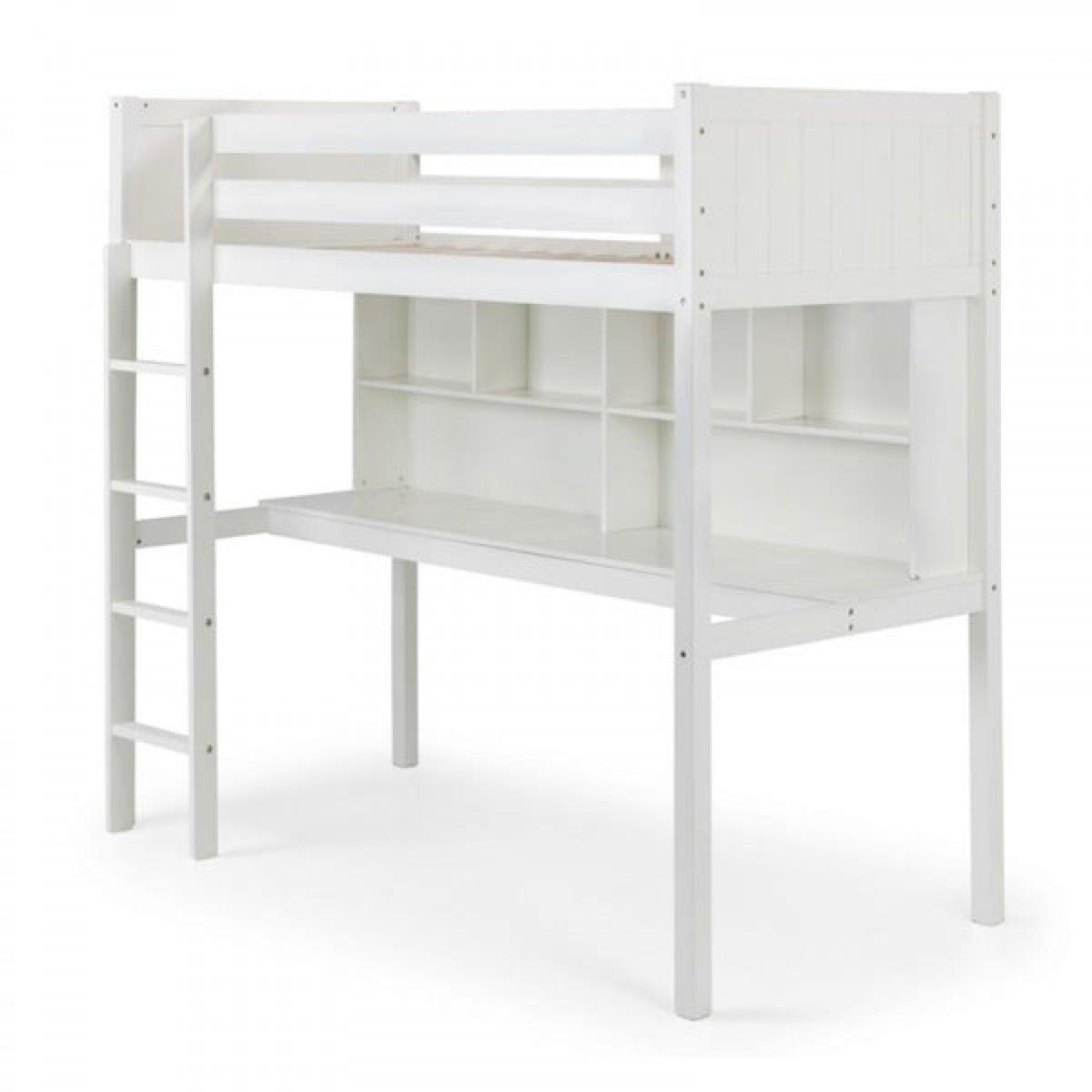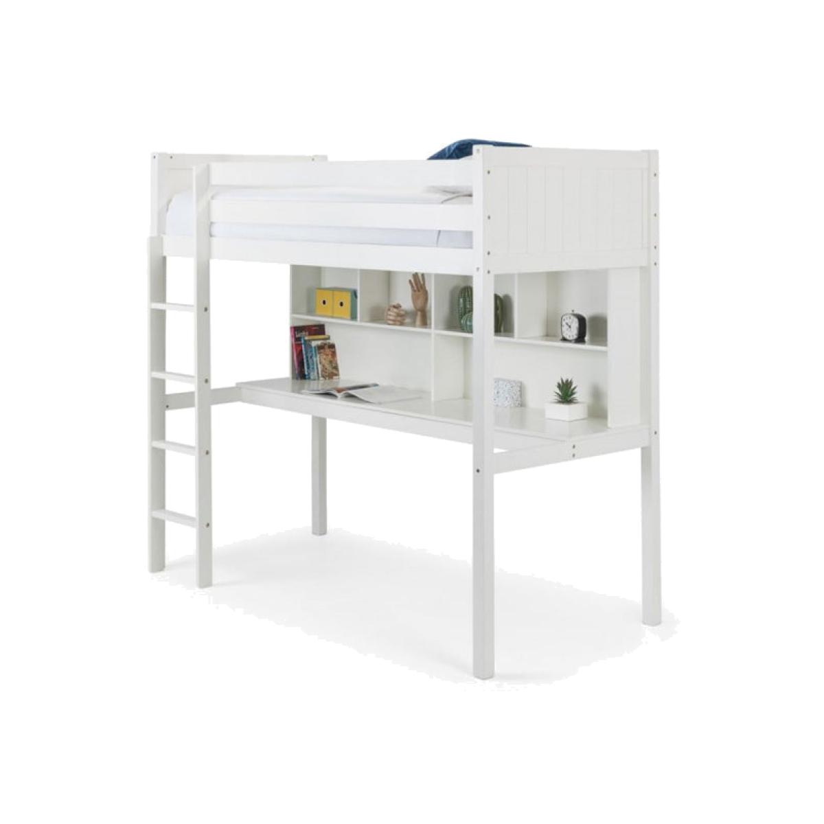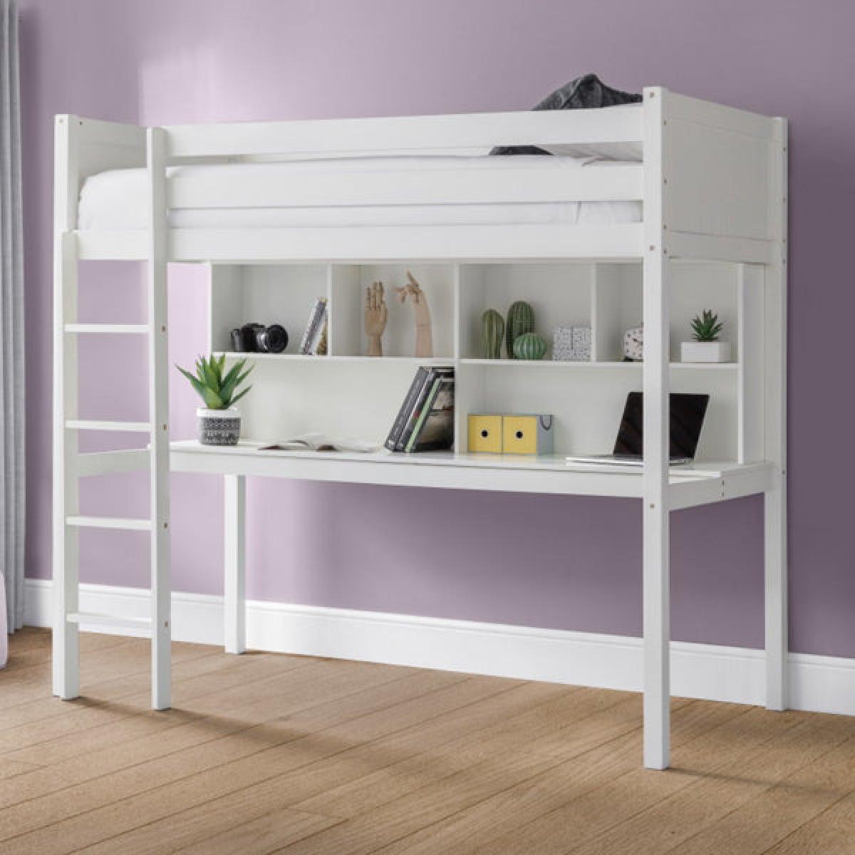 Crafted from Malaysian Hardwood and MDF, the Titan High sleeper is finished in a white lacquer, matching with any bedroom décor as they grow. Offering a classic design with panelled detailing, this high sleeper features a workstation underneath, complete with shelves and room beneath for extra storage.