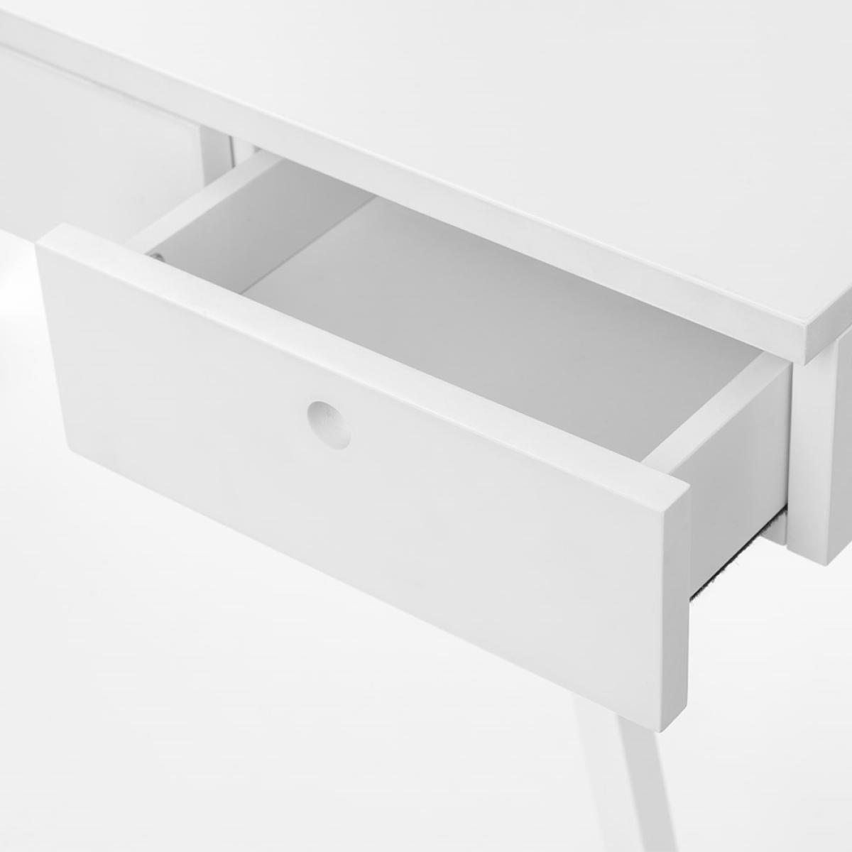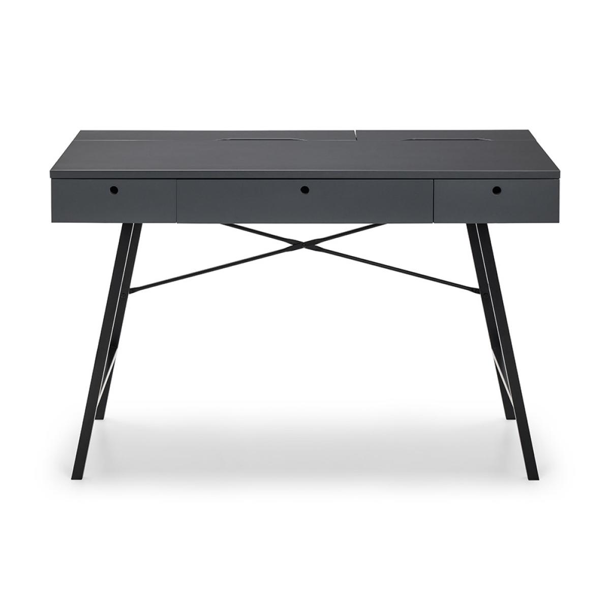 Upgrade your home office with the Trianon Desk from Julian Bowen. With its simplistic design and sleek metal legs, this piece will look great in any room of the house. But this desk isn't just about looks, oh no! With three drawers and an additional three lift-up storage compartments to the back of the desk, you'll never be short on storage space. Ideal for chargers, cables and pens aplenty it will leave vital desk space for that all-important cup of coffee!.