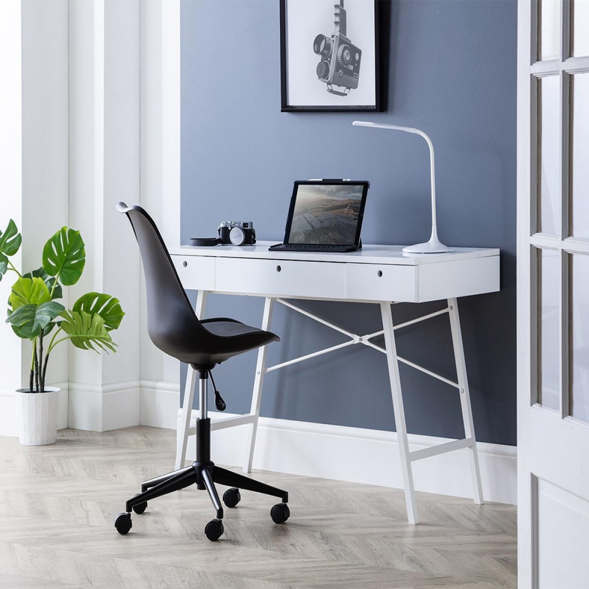 The Julian Bowen Trianon desk is a sleek, versatile piece that works particularly well in contemporary and Scandinavian-inspired interiors. Its minimalist design and neutral grey finish make it easy to style with a variety of colour schemes and accessories. I love pairing it with simple, functional decor-think organisers, small plants, and modern lighting-to keep the space looking tidy and inspiring. Practical styling tips include adding a patterned or textured desk pad to bring in some warmth, and using vertical storage solutions to optimise space. This desk is ideal for home offices or study nooks where a clean, uncluttered aesthetic is preferred.