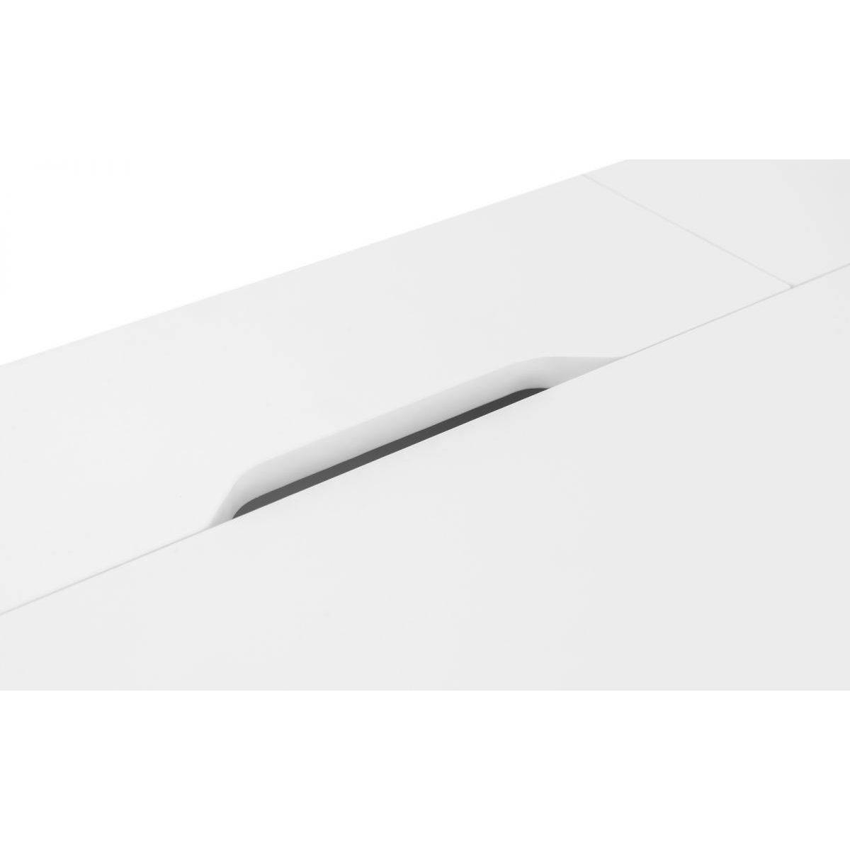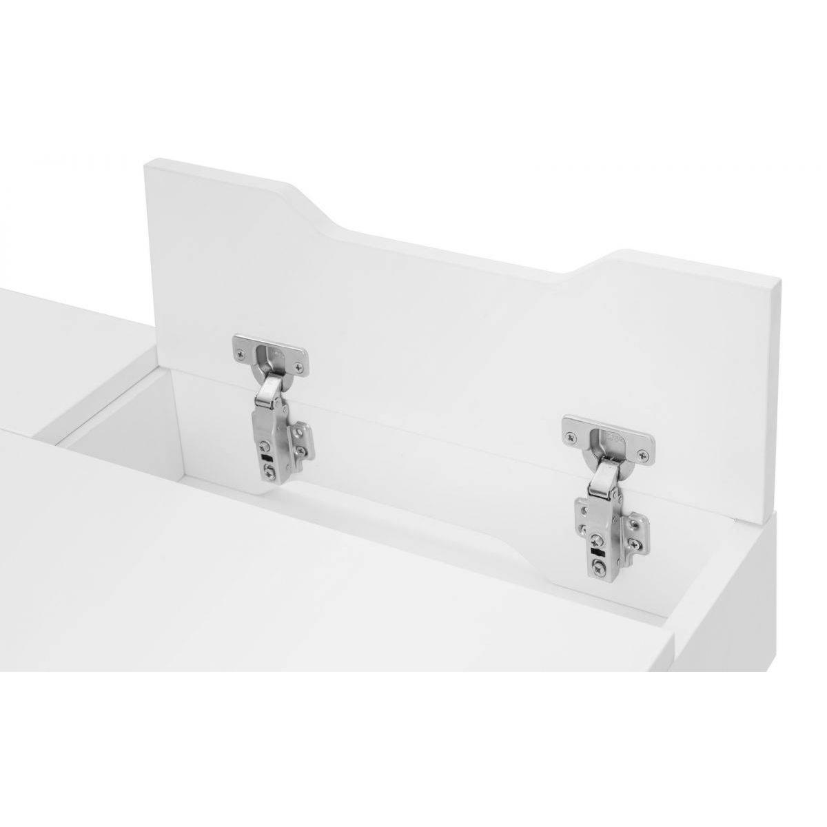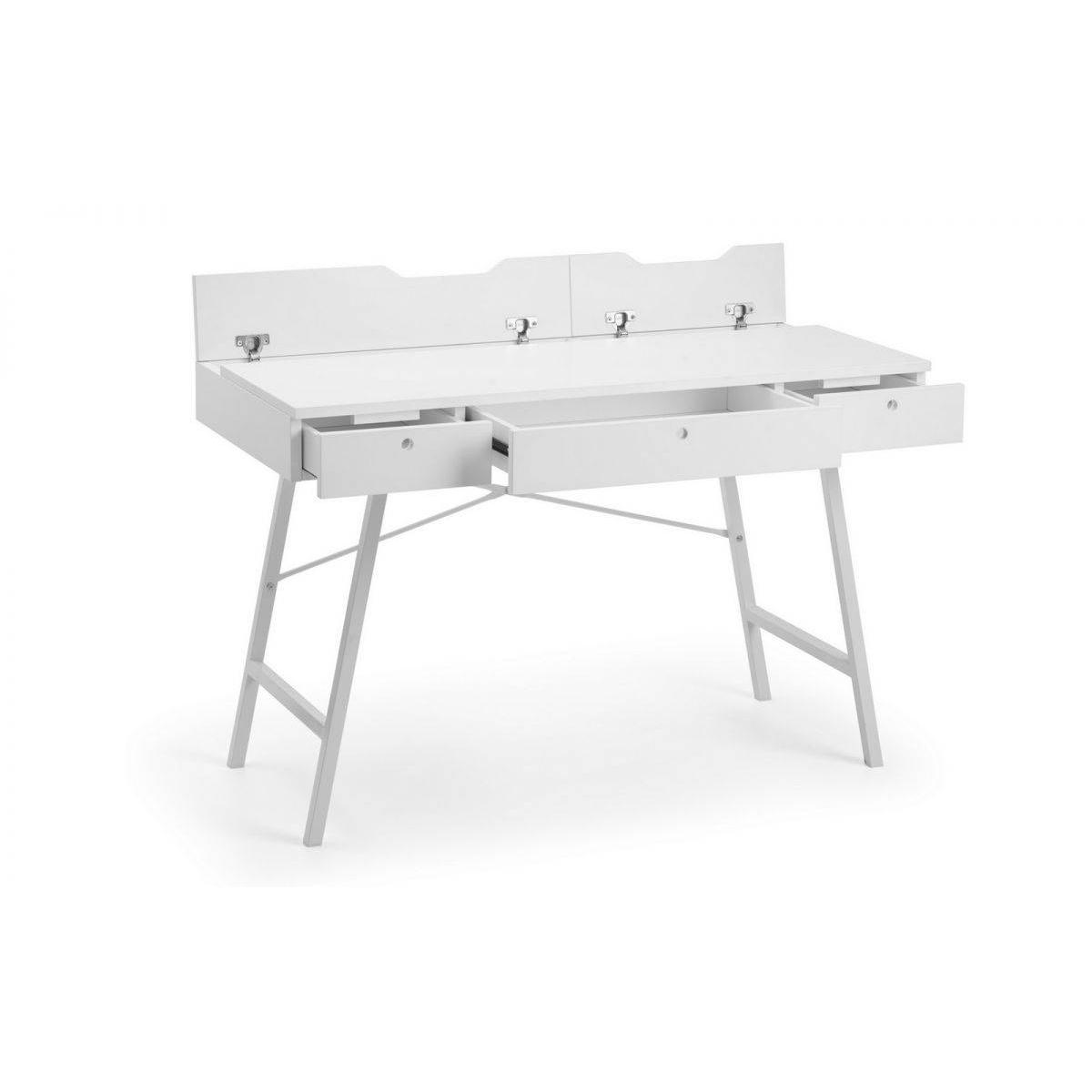 The Trianon Desk is the perfect addition to upgrade your workspace. This simple, Scandinavian design offers copious amounts of storage for your office supplies, featuring pull-out drawers at the front and 3 lift-up storage compartments with stunning recessed handles. The Trianon Desk is available in a grey or white finish upon slender, black metal legs, ideal for smaller working areas. Dimensions: 56cm (D) x 117cm (W) x 75cm (H)Assembly required.