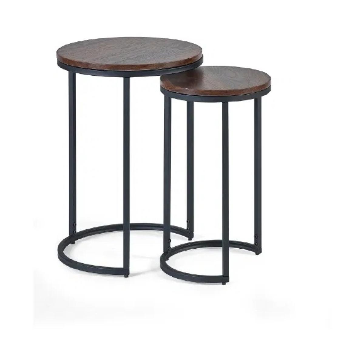 The Tribeca Round Nesting Side Tables by Julian Bowen offer a stylish and practical addition to any living space. Finished in a rich walnut effect with contrasting black metal frames, these versatile tables provide both elegance and convenience. Features: Set of two round nesting tables in a contemporary industrial design Warm walnut finish complemented by sleek black metal frames Space-saving design – smaller table nests neatly under the larger one Ideal for drinks, lamps, or displaying decorative accessories Can be used together or separately for added versatility Dimensions: Large Table: W 50 cm x D 50 cm x H 50 cm Small Table: W 40 cm x D 40 cm x H 45 cm The Julian Bowen Tribeca Round Nesting Side Tables combine functionality with modern design, making them a perfect fit for a wide range of interiors. Please note All screens vary in colour reproduction and whilst every effort has been made to display the colour as accurately as possible it is for guidance only.