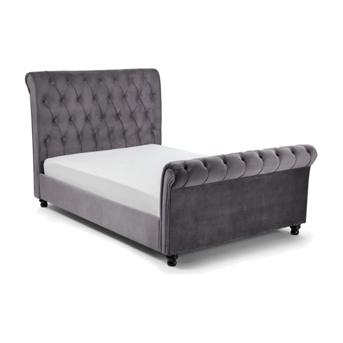 Oozing elegance, the Valentino bed is sure to be a luxurious focal point in any bedroom. This beautifully crafted bed offers a sophisticated sleigh design, upholstered in a soft velvet fabric with classic button detailing and stylish studding. Available in Double, King, and Super King sizes.