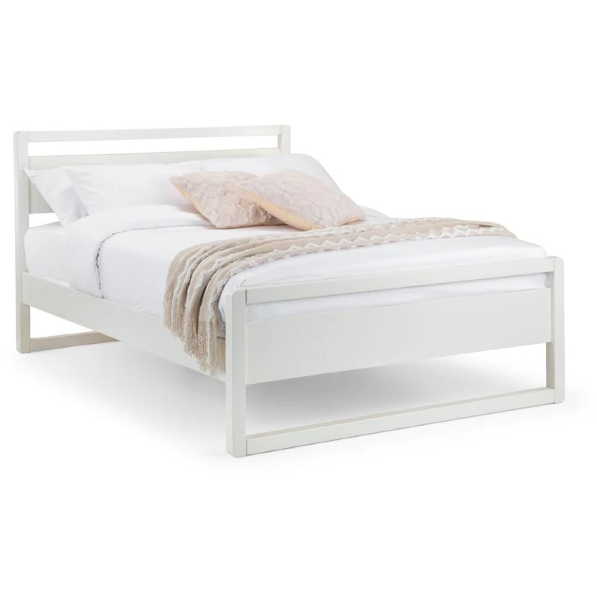 Classic design meets fresh, modern style with the Julian Bowen Venice Bed in Surf White. Featuring a gracefully arched headboard, subtle detailing, and a crisp painted finish, this bed brings a light, airy feel to any bedroom. Crafted from sturdy wood and finished in a soft Surf White lacquer, the Venice Bed blends traditional charm with contemporary simplicity. Its clean lines and timeless silhouette make it a versatile choice for both adult and children’s bedrooms, guest rooms, or coastal-inspired interiors. Supported by a durable slatted base, the Venice offers reliable support for a peaceful night’s sleep – all while adding understated elegance to your space. Key Features: Timeless design with a gently curved headboard Finished in a fresh Surf White lacquer Solid wood construction for lasting durability Slatted base for enhanced mattress support and breathability Ideal for both classic and contemporary interiors Home Assembly Required Dimensions: Single Height 100cm Width 98cm Depth 200cm Double Height 100cm Width 144cm Depth 200cm All screens vary in colour reproduction and whilst every effort has been made to display the colour as accurately as possible it is for guidance only.