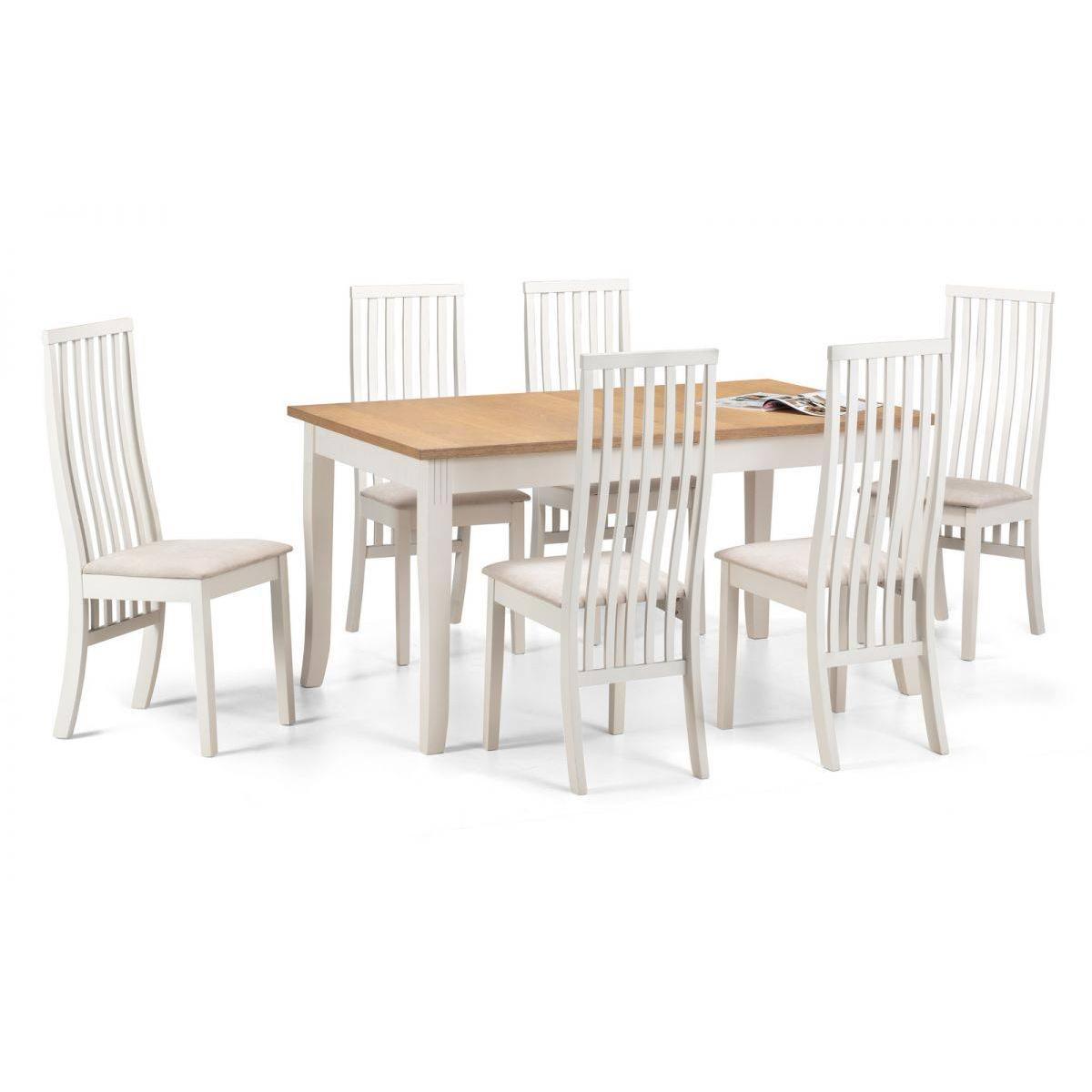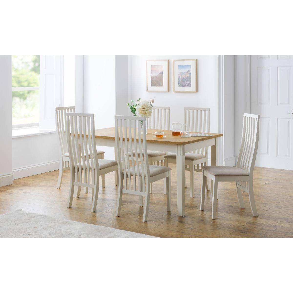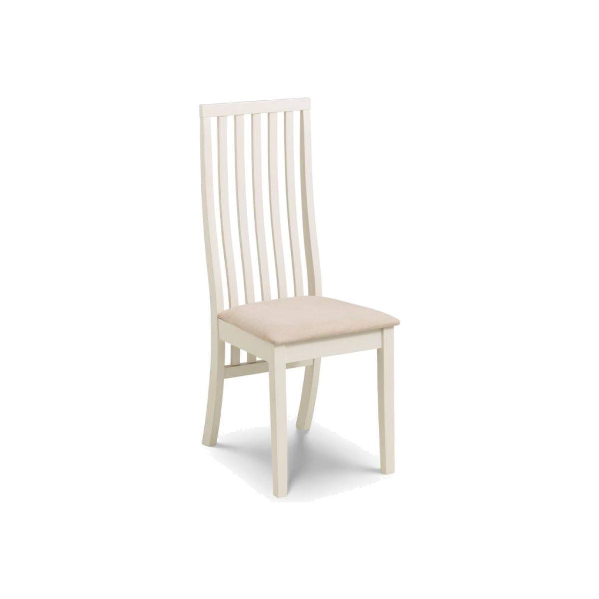 The Vermont dining chair is finished in an ivory lacquer, with a faux suede seat pad adding extra comfort for you and your dinner guests. Featuring a high slat back, this dining chair will create a statement piece in your dining area. The perfect match for the Julian Bowen Davenport dining table. Assembly required.