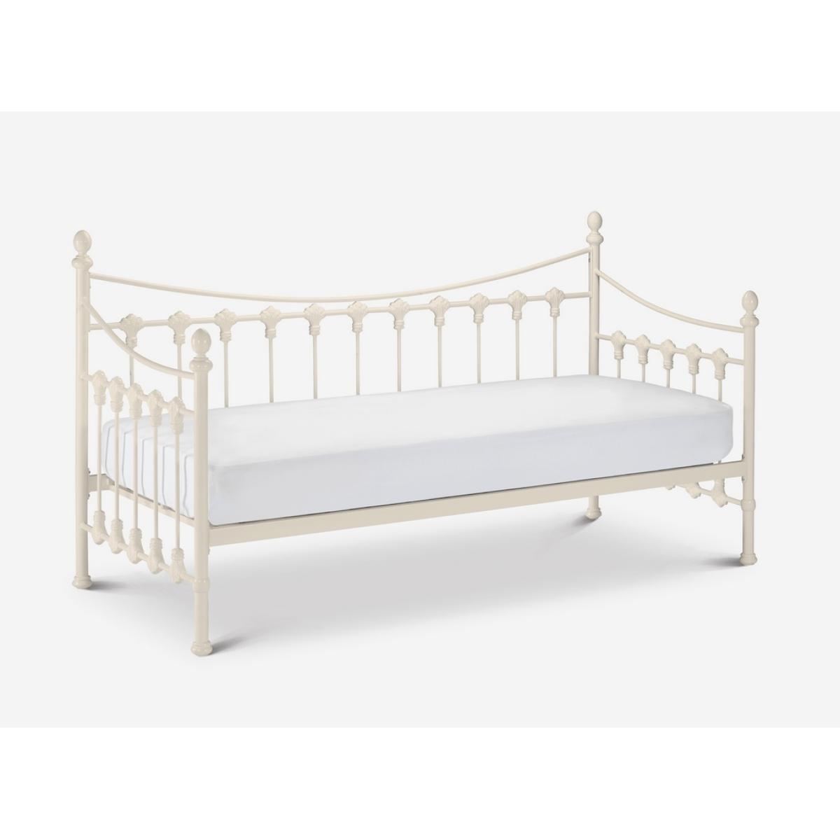 I love this kids’ day bed because of its classic metal frame design, which offers a timeless and versatile aesthetic. It works particularly well in traditional or vintage-inspired interiors, but can also be given a modern twist with colourful bedding or playful accessories. To style it effectively, consider layering with cosy textiles like throws and cushions for added comfort, and pair it with complementing furniture in wood or painted finishes to create a balanced look. For practicality, keep it neat with simple bedding that’s easy to change, making it both attractive and functional for everyday use.