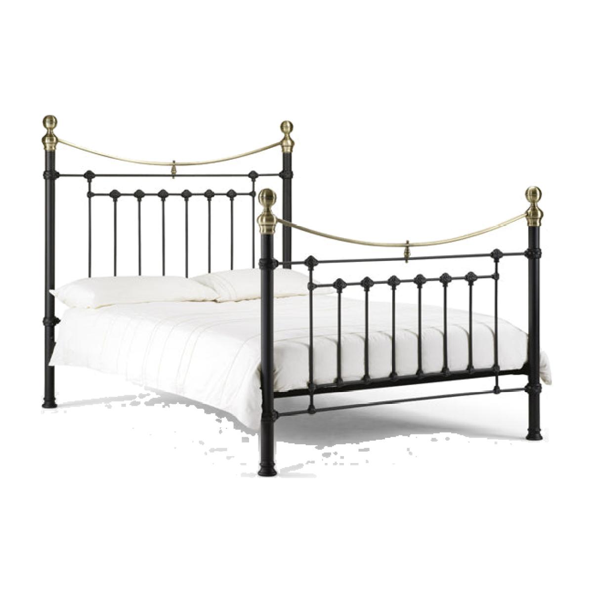 This is a traditional, Victorian inspired bedstead with attractive brass embellishments in a powder coated steel stone white finish. Victoria is an imposing bed with striking high headboard and matching footboard, whose timeless style complements a wide range of interior styles. A sprung slatted base ensures a comfortable night's sleep and prolonged mattress life. Available in 90cm, 135cm and 150cm sizes. H:146 x W: 151 x D: 207 x Head H: 146 x Foot H: 102 cm. H:146 x W: 166 x D: 215 x Head H: 146 x Foot H: 102 cm. H:146 x W: 166 x D: 215 x Head H: 146 x Foot H: 102 cm.