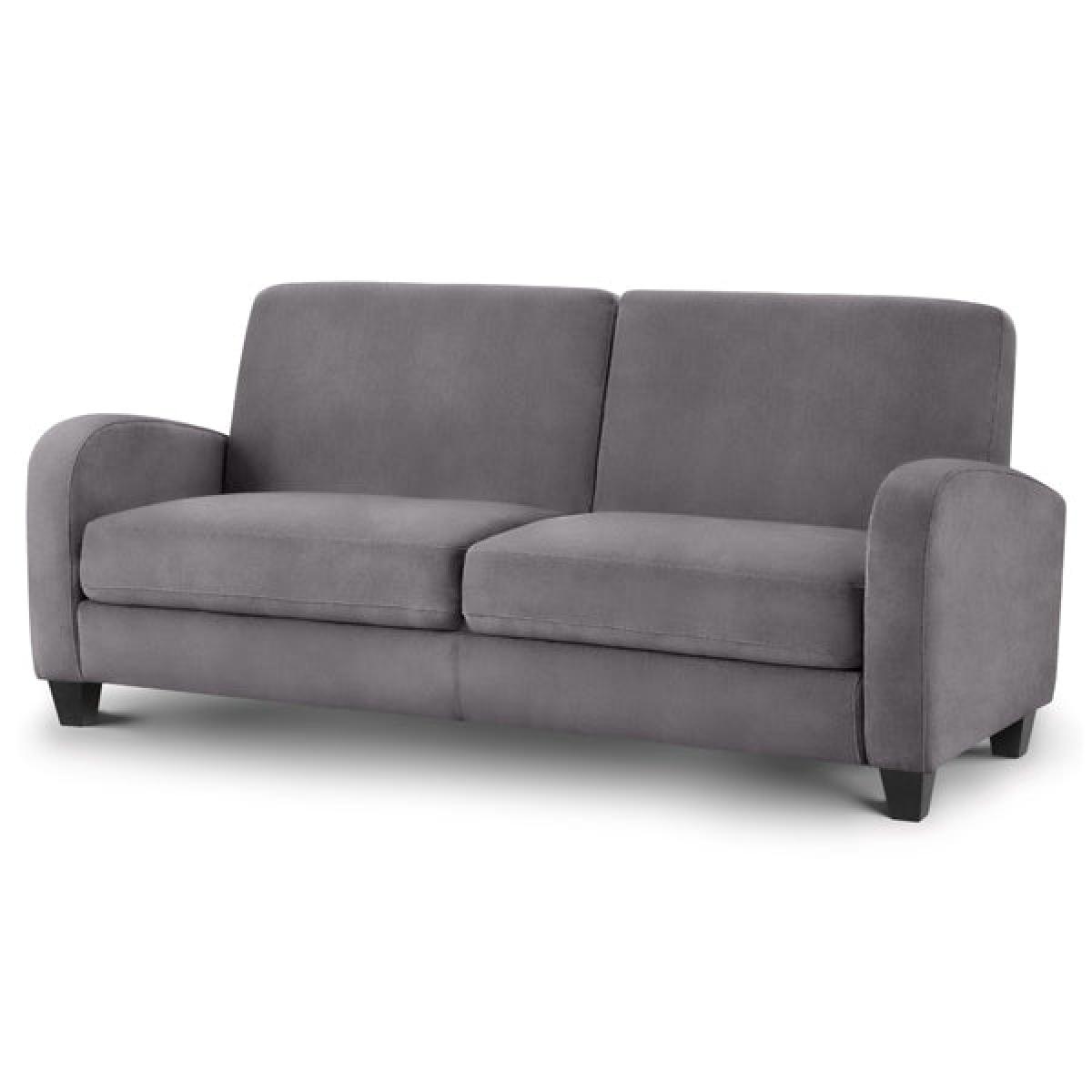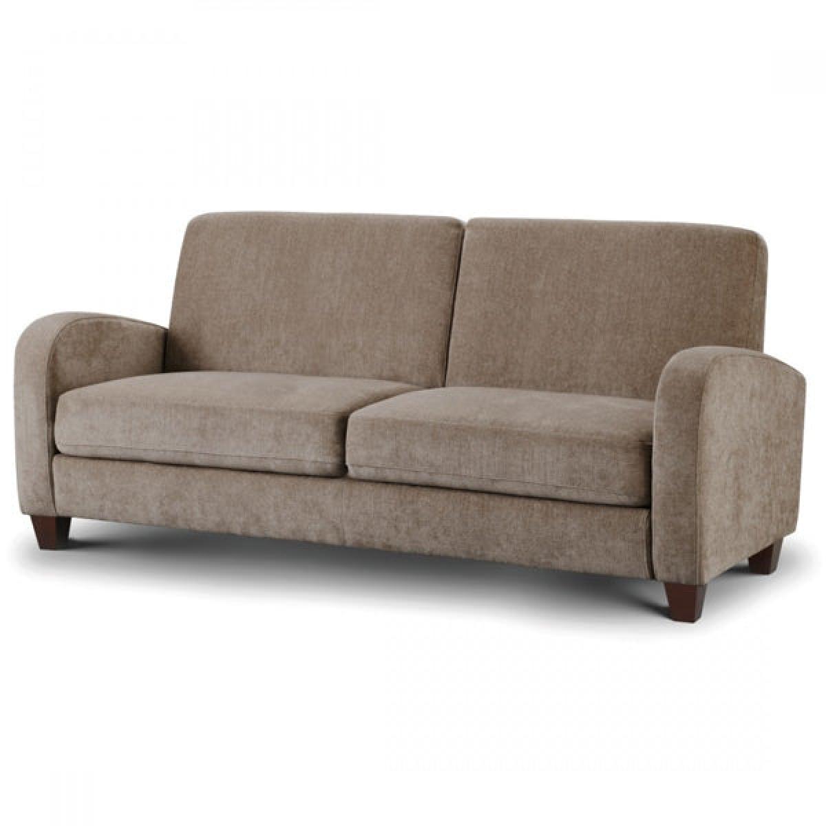 Relax in style with the Vivo sofa collection. With the option of three stylish finishes, this collection is available in a chestnut brown faux leather, mink or dusk grey chenille soft to touch fabric, enhancing a contemporary design. The range adds a modern touch to any room, with the use of high-grade foams within luxurious fabric. Crafted from a strong hardwood frame, ensuring long lasting durability, the Vivo range includes an armchair, 2-seater sofa, 3-seater sofa and sofa bed. H: 83 x W: 183 x D: 80 cm.