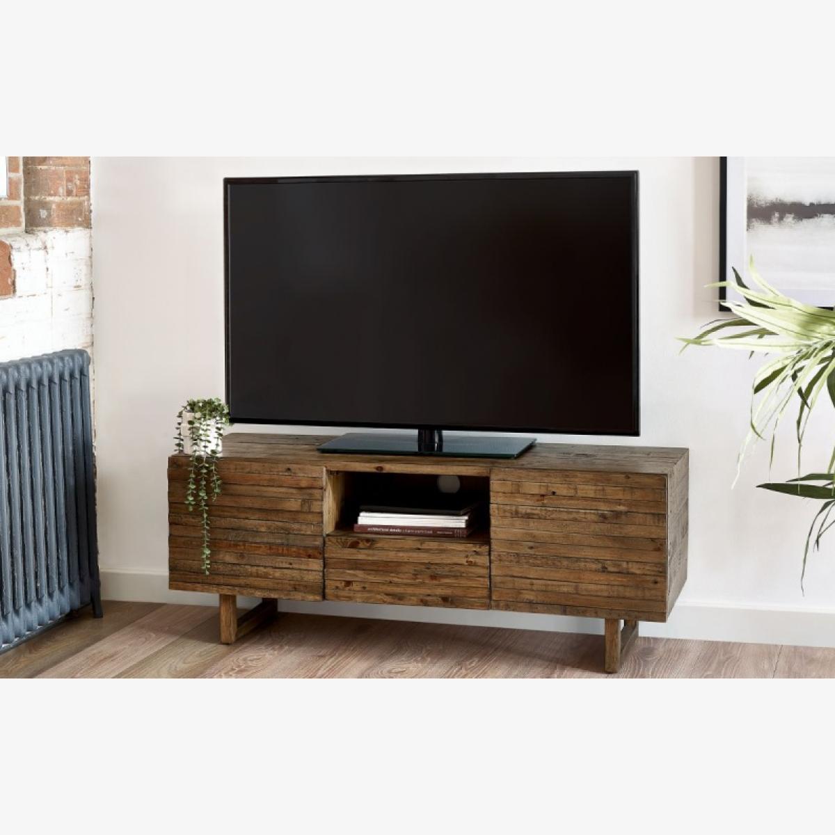 The Julian Bowen Woburn Media Unit combines classic elegance with practical functionality, making it a stylish and versatile addition to any living space. A perfect blend of style and practicality, the Woburn Media Unit provides a sophisticated solution for organising your entertainment essentials. Key Features: Timeless Design – Crafted from reclaimed Pine featuring a warm, rich finish that complements a variety of interiors. Ample Storage – Includes two spacious cupboards and an open shelf, perfect for media devices, gaming consoles, and accessories. Cable Management – Designed with a rear cut-out for easy and tidy cable organisation. Durable Build – Sturdy construction ensures long-lasting quality and stability. Compact & Versatile – Ideal for both modern and traditional home settings. Dimensions Height 50cm Width 130cm Depth 42cm Weight 23kg Please Note Full Assembly Required Wipe Clean with Dry Cloth Due to its recycled nature, no two items are the same, which makes this a unique addition to your home. All screens vary in colour reproduction and whilst every effort has been made to display the colour as accurately as possible it is for guidance only.