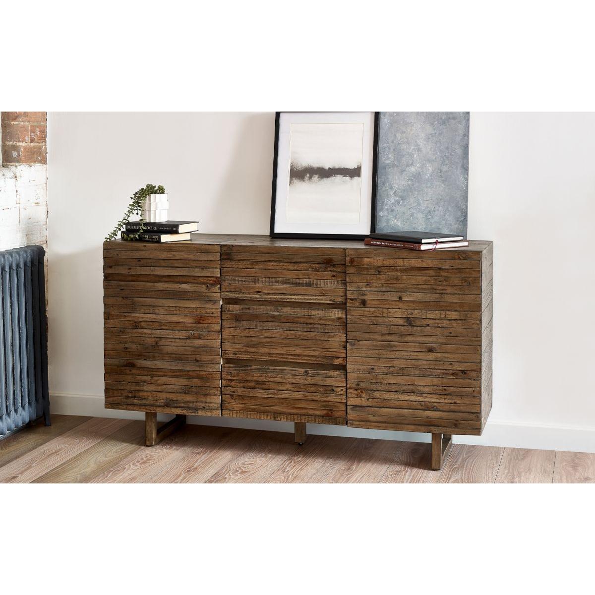 The Julian Bowen Woburn Sideboard is a beautifully crafted storage solution that brings classic charm and practicality to any home. Designed with a timeless oak finish, this sideboard offers a warm, natural aesthetic that complements both traditional and contemporary interiors. Perfect for keeping your home neat and stylish, the Woburn Sideboard is a must-have addition to any interior. Key Features: Reclaimed wood – Built for durability and longevity Spacious Storage – Features two cupboards and three drawers for ample organisation Classic Design – Elegant detailing with a warm oak finish Versatile Use – Ideal for dining rooms, living spaces, or hallways Sturdy Build – Designed to withstand everyday use Dimensions Height 80cm Width 145cm Depth 43cm Weight 46.5kg Please Note Full Assembly Required <! --%3C!%2D%2Dtd%20%7Bborder%3A%201px%20solid%20%23cccccc%3B%7Dbr%20%7Bmso-data-placement%3Asame-cell%3B%7D%2D%2D%3E--> Wipe Clean with Dry Cloth Due to its recycled nature, no two pieces are the same, which makes this a unique addition to your home. All screens vary in colour reproduction and whilst every effort has been made to display the colour as accurately as possible it is for guidance only.