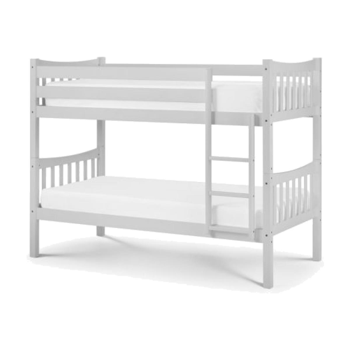 The Zodiac is a highly versatile bunk bed finished in a grey lacquer which will match any style of decor. Beautifully designed with a subtle, attractive curve in matching head and footboards. Zodiac's solid construction features high side rails and a robust ladder, while the overall footprint is cleverly compact to ensure maximum use of space in smaller bedrooms. Conforms to BS EN 747:2012 Safety Standards. To minimise the danger of falling from the top bunk, we recommend that the top of the mattress should always be at least 16cm below the top of the lowest part of the guardrail. Maximum mattress height for this bunk is 18cm. Minimum age recommendation - top bunk 6 years, bottom bunk 4 years. Accepts 2 Standard UK Single Mattresses (90cm x 190cm). Distance from floor to top of ladder - 154cm. Dimensions: 103cm (D) x 201cm (W) x 154cm (H) Requires assembly. Please note, this product is an online exclusive and is not available to view in any of our stores.