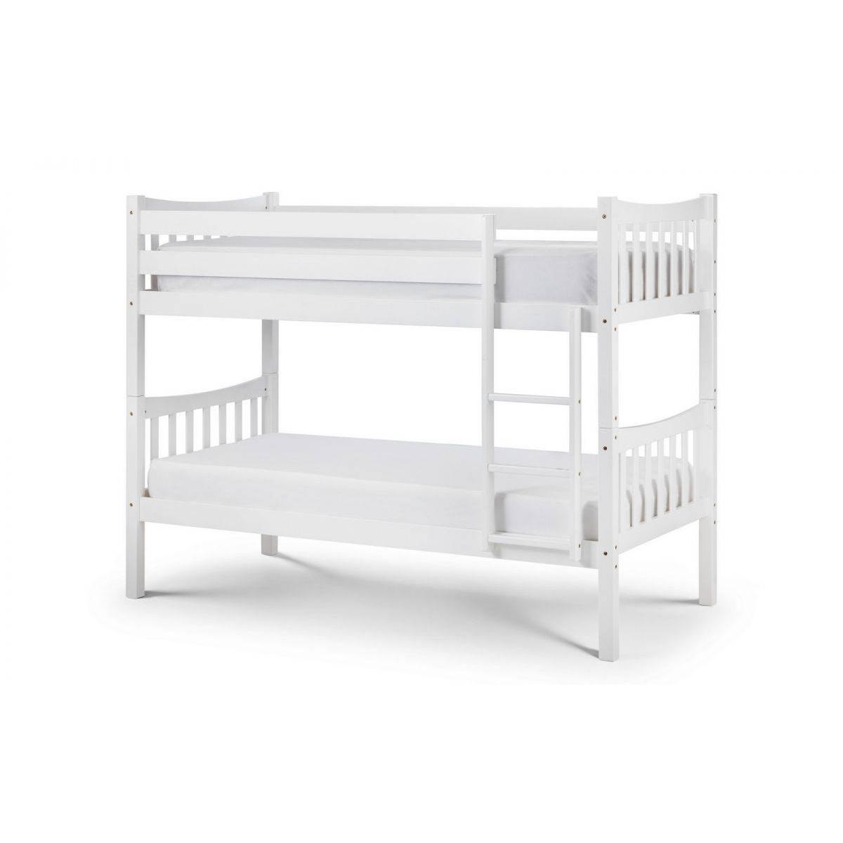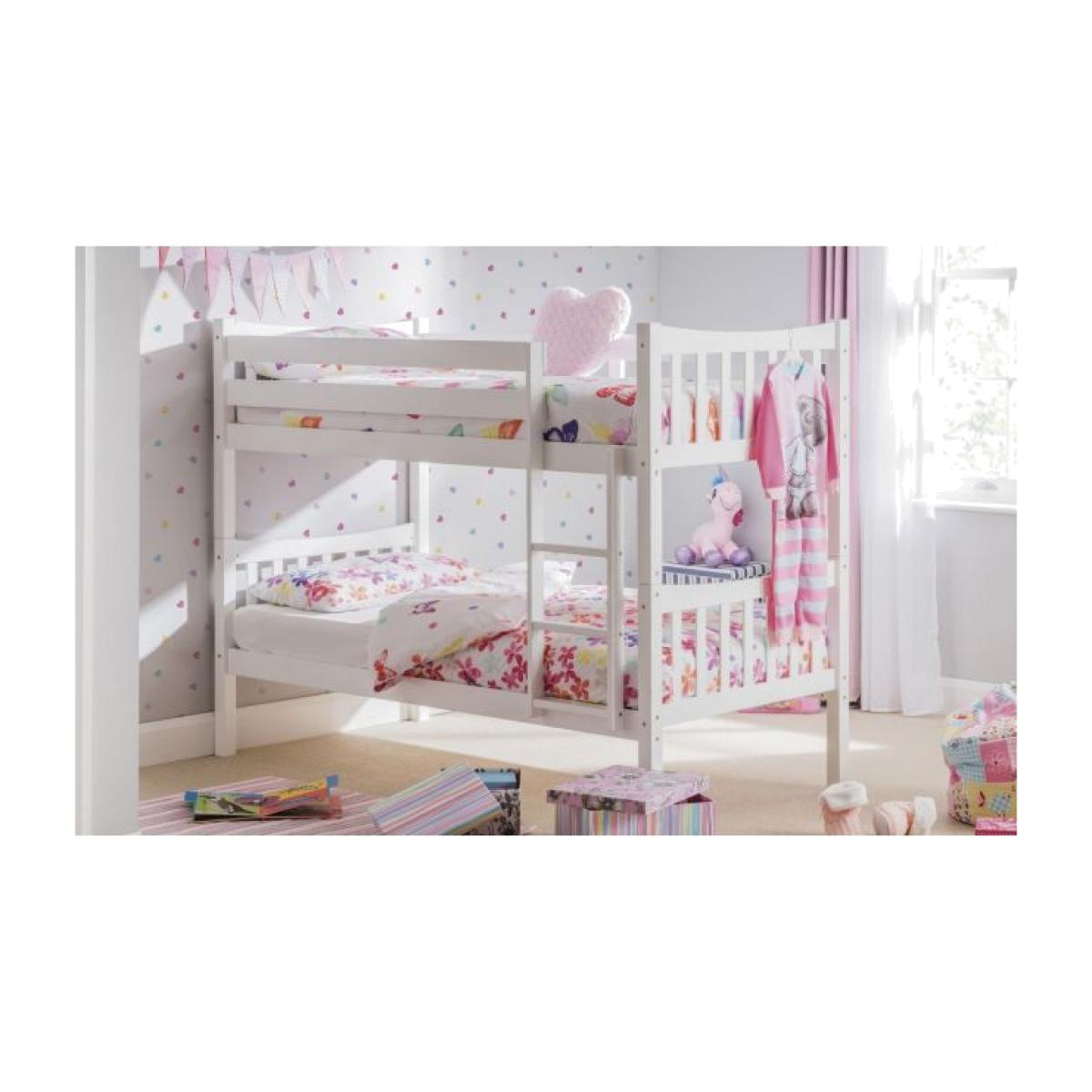 The Zodiac is a highly versatile bunk bed finished in a brilliant white lacquer which will match any style of decor. Beautifully designed with a subtle, attractive curve in matching head and footboards. Zodiac's solid construction features high side rails and a robust ladder, while the overall footprint is cleverly compact to ensure maximum use of space in smaller bedrooms. Features: Dimensions: 103cm D x 201cm W x 154cm H Durable Bright White Lacquered Finish Conforms to BS EN 747:2012 Safety Standards Accepts 2 Standard UK Single Mattresses (90cm x 190cm) Minimum age reccomendation - top bunk 6 years, bottom bunk 4 years. Distance from floor to top of ladder - 154cm Conforms to BS EN 747:2012 Safety Standards To minimise the danger of falling from the top bunk, we recommend that the top of the mattress should always be at least 16cm below the top of the lowest part of the guardrail. Maximum mattress height for this bunk is 18cm Requires assembly Material:Solid malaysian hardwood