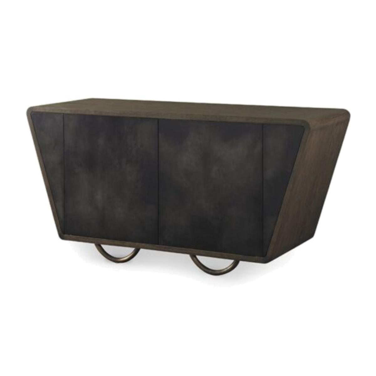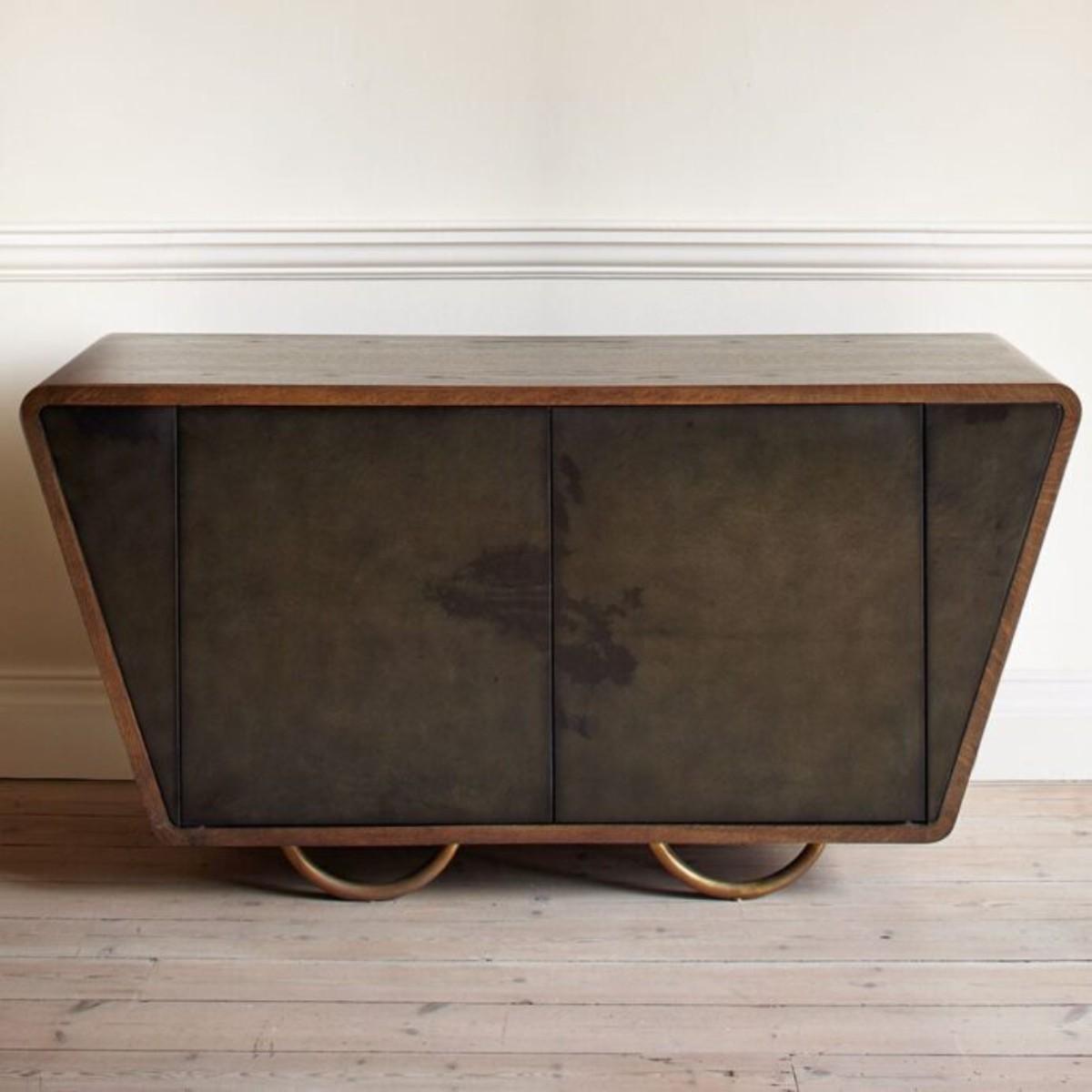 A beautiful Danish inspired cabinet with wrapped in Firmdale Grey Oak with Black Vellum clad doors and contrasting hooped Brass feet. Vellum is a natural skin with no two pieces exactly alike, therefore variation in shade and tone along with physical characteristics are inevitable and may change over time.