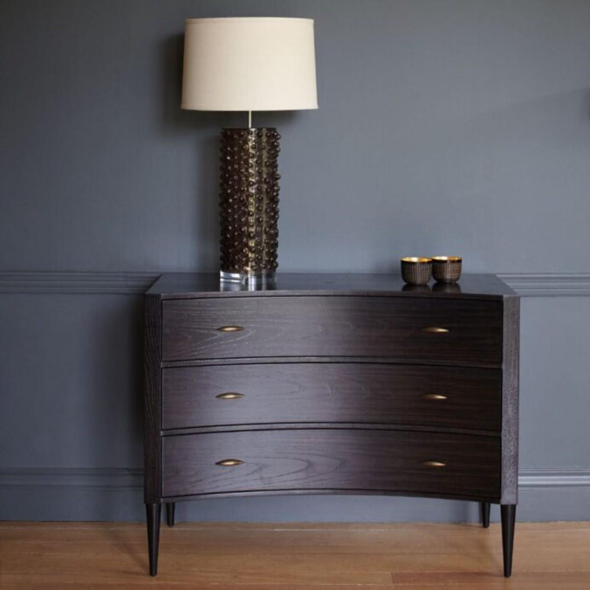 I’m a fan of the Percy chest in ebonised oak for its clean, curved silhouette and subtle brass handles - it brings just the right balance of warmth and modernity. It sits neatly in a hallway or living room styled in contemporary, mid-century or modern-classic schemes, especially against lighter walls to let its deep grain really pop. Top it with a sculptural lamp and a framed print at eye level, then add a small tray or stack of books for everyday bits and bobs. Its slim proportions also mean it works well in smaller rooms where you need storage without bulk.