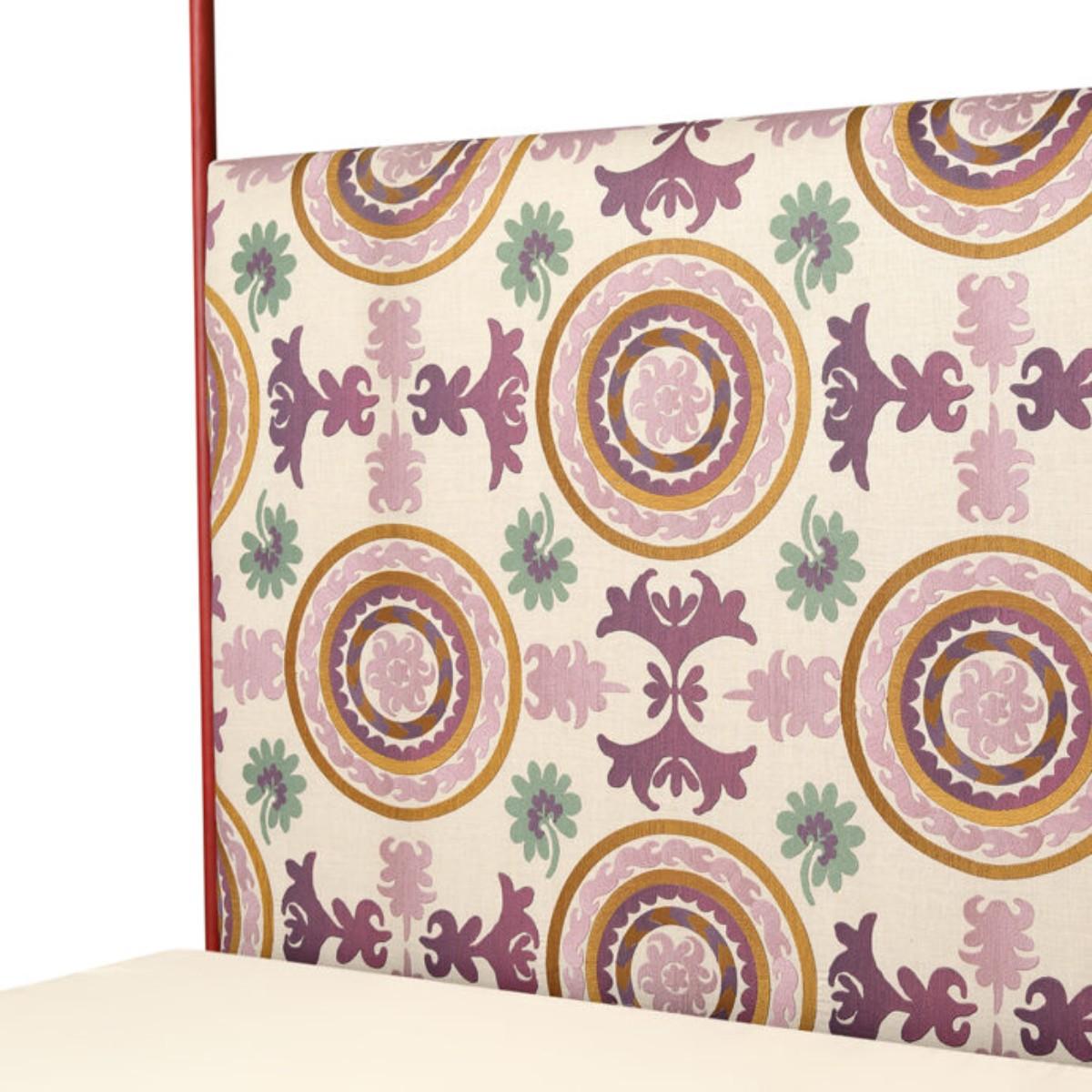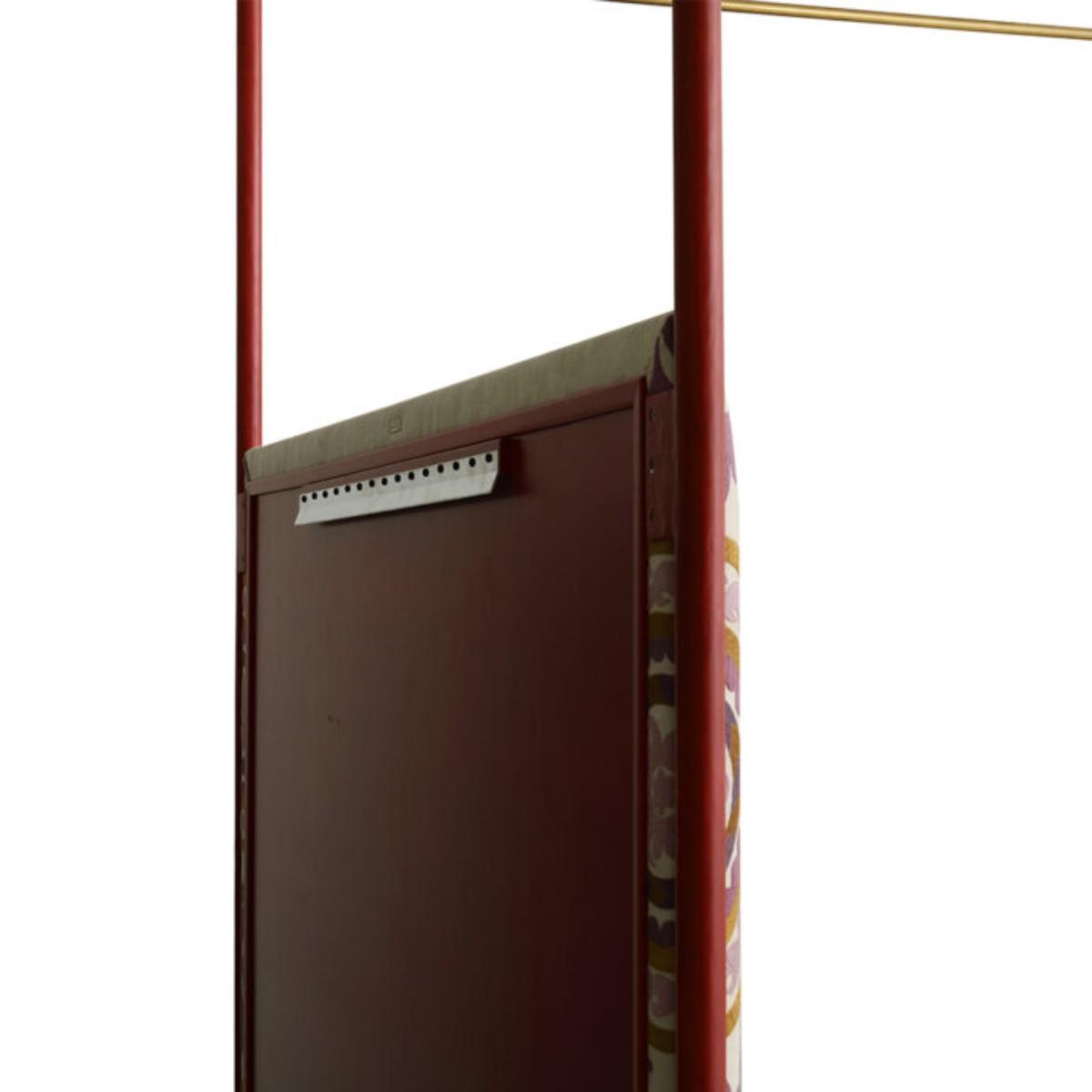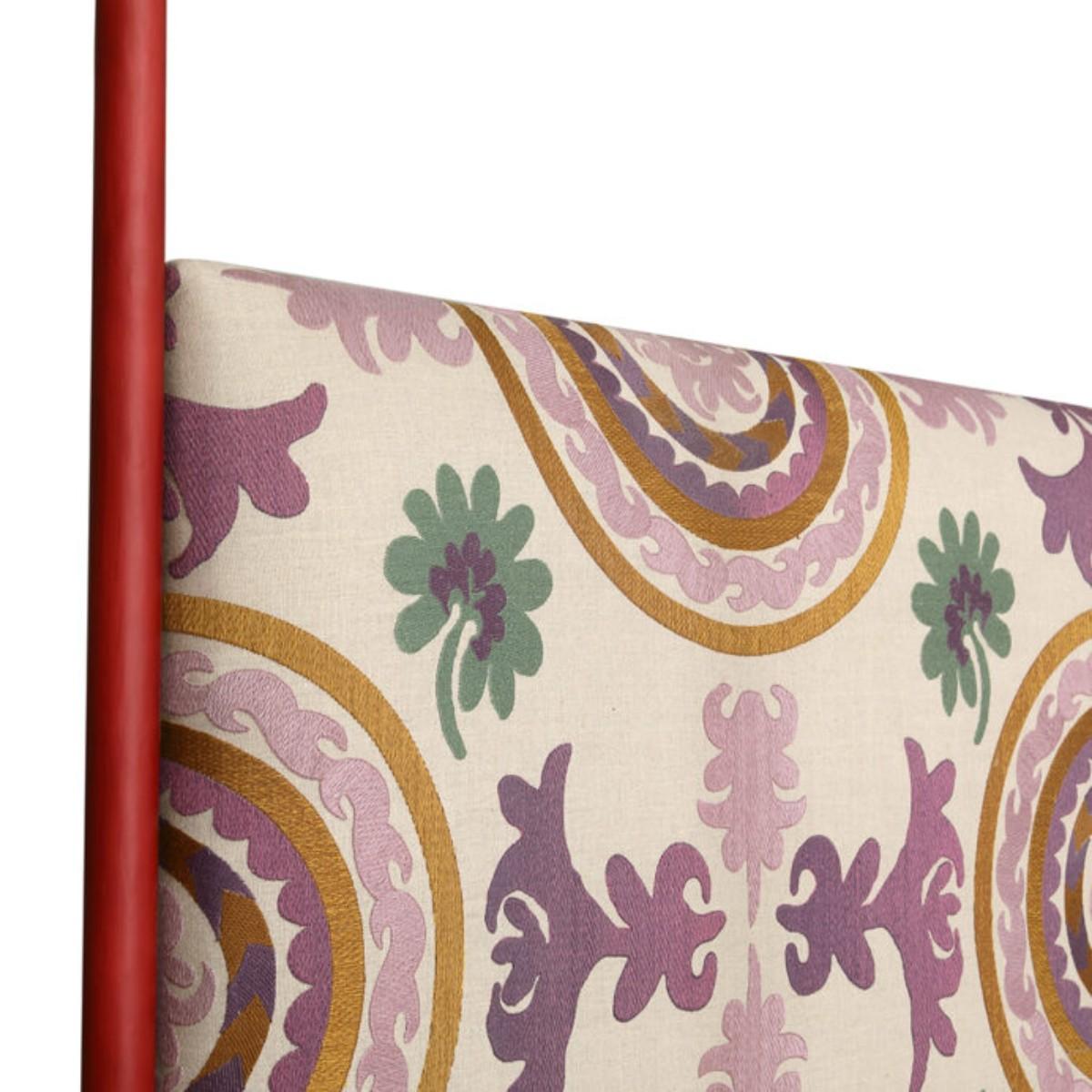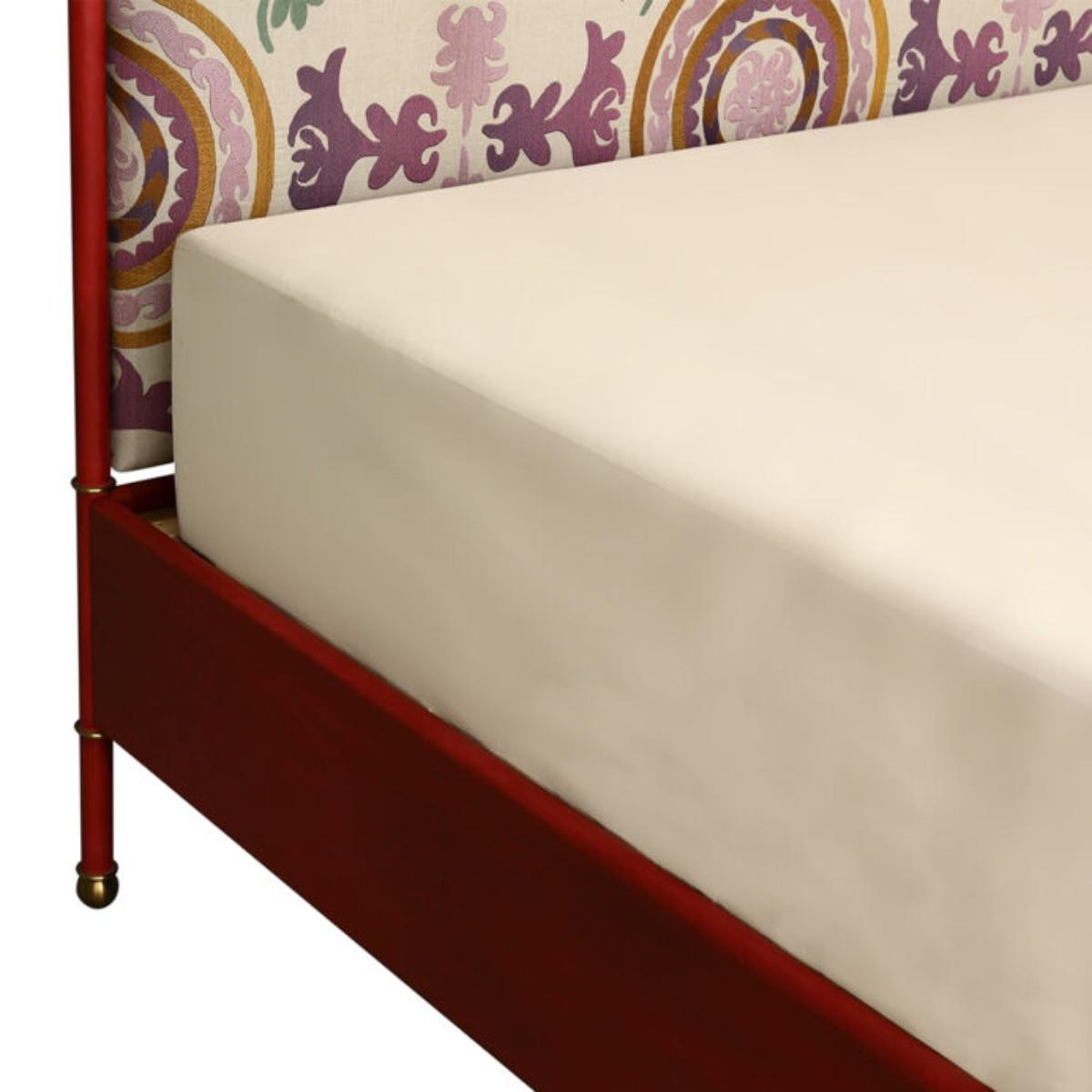 I’m a fan of how the red gesso frame and aged-brass fittings give the Rita bed a crisp, modern-vintage feel without overwhelming the room. Its slim four-poster silhouette works equally well in a pared-back Scandi-influenced interior or a more eclectic scheme. Keep bedding neutral (think ivory or stone) so the red remains the focal point, then echo the brass detail in your lighting or small accessories. It’s especially effective against white or deep jewel-tone walls and pairs nicely with a low-pile rug and simple bedside tables to let the bed’s clean lines really stand out.