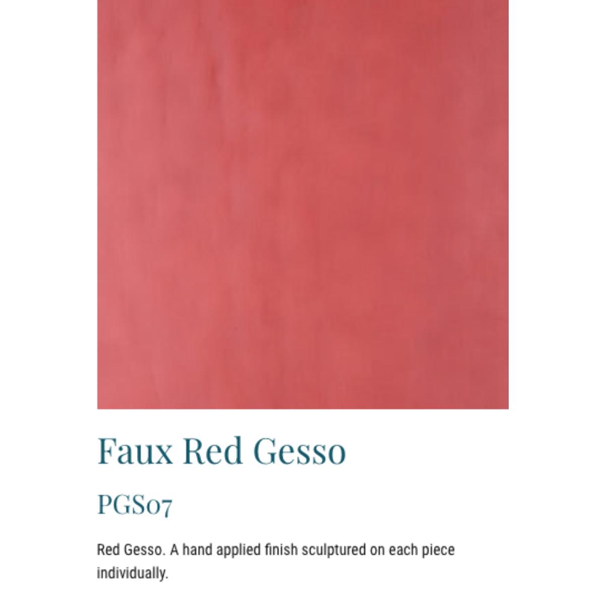 The Rita is a beautiful, Adnet-inspired Red Gesso clad bed with contrasting decorative brass rings. Gesso is a hand applied finish which is moulded by hand. As a result the finish is unique in both appearance and texture. Upholstery: Unless otherwise instructed at the point of order, our upholsterer/s will, depending on the type and thickness of fabric/leather/velvet, use their own discretion when deciding how to proceed with placement, piping, studding etc.