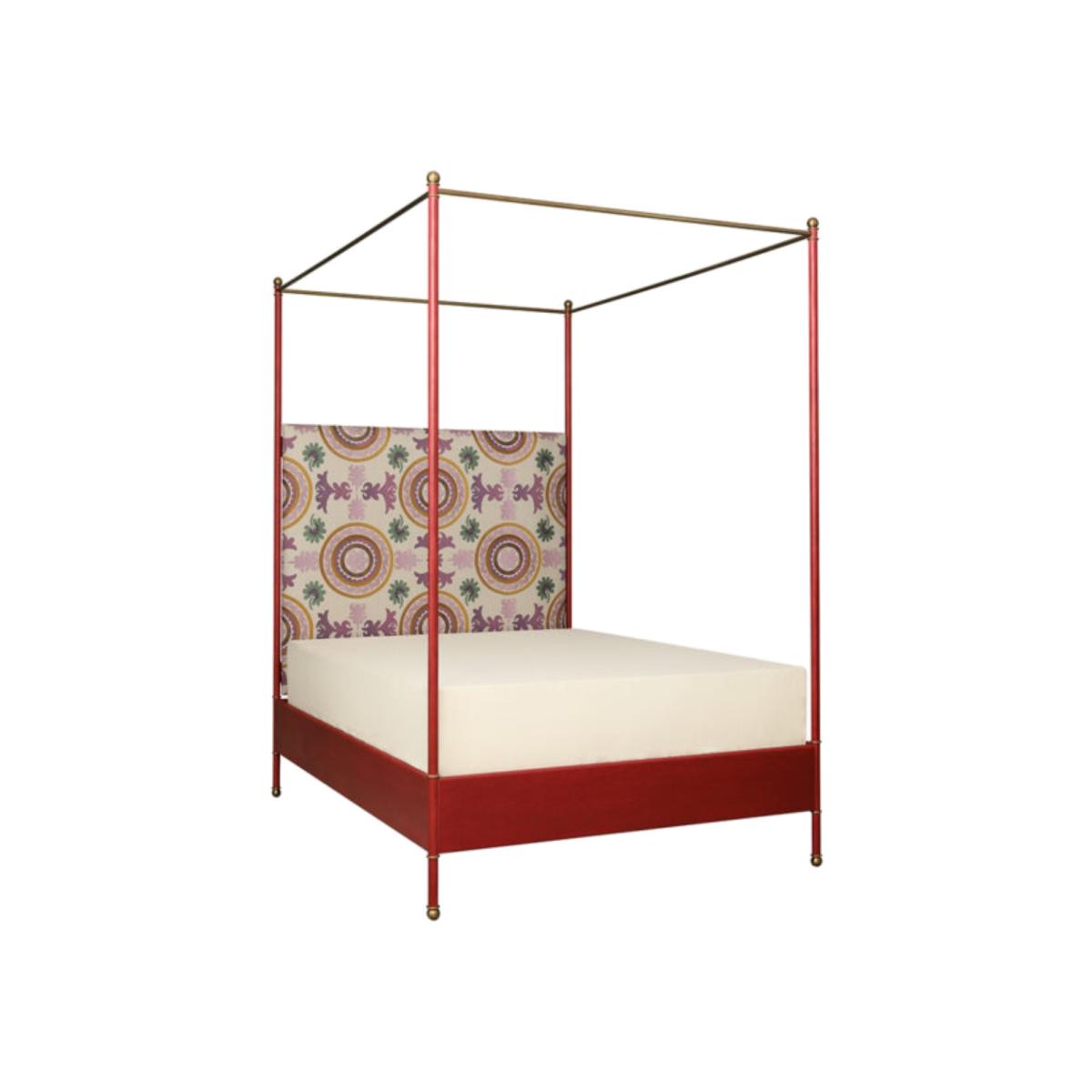 Julian Chichester | Rita Four Poster Bed 5 ft | Red Gesso & Aged Brass