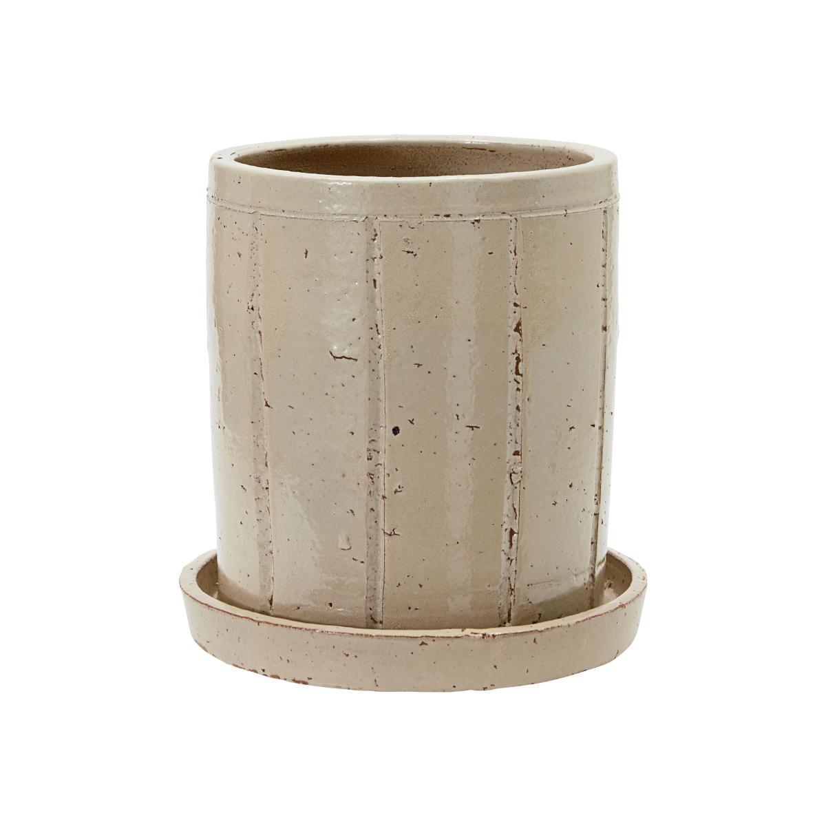 Julian flower pot with plate Ø22 cm from House Doctor is made of stoneware in a rustic design that looks like old-fashioned wooden barrels. The carved lines and the vibrant glaze make each pot and plate unique. The vibrant pot accentuates your plants and looks lovely on the windowsill or in your hall.