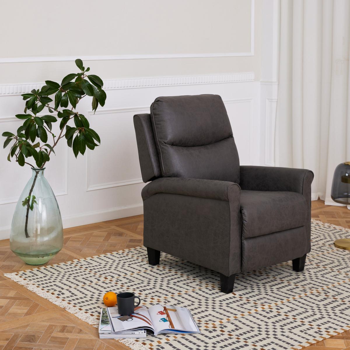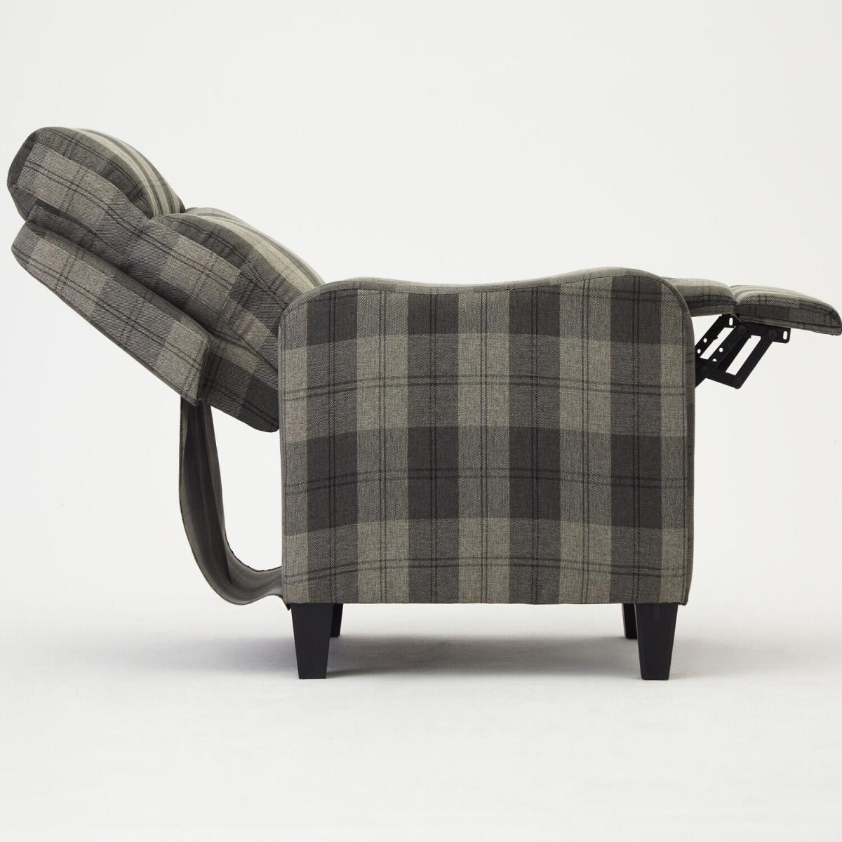 Introducing JULIAN, a push back recliner armchair available in Grey Tartan Woven Fabric and Grey New Technology Fabric. This new technological fabric has an air leather appearance with a soft suede feel to the touch. JULIAN is a padded, statement foam filled recliner armchair. This recliner has a simple push back recline mechanism for when you want to take your relaxation that step further, push gently on the backrest with your body to lock it into the recline position, and to return to upright position simply push down on the foot rest until it locks back into place. Some fabrics may appear slightly different in real life due to variations in lighting conditions and laptop, tablet and mobile screen resolution. Delivered by our friendly couriers within 1-3 working days. The courier will deliver to the main door of the building only on an all-day 7am to 7pm service with no time slots provided.