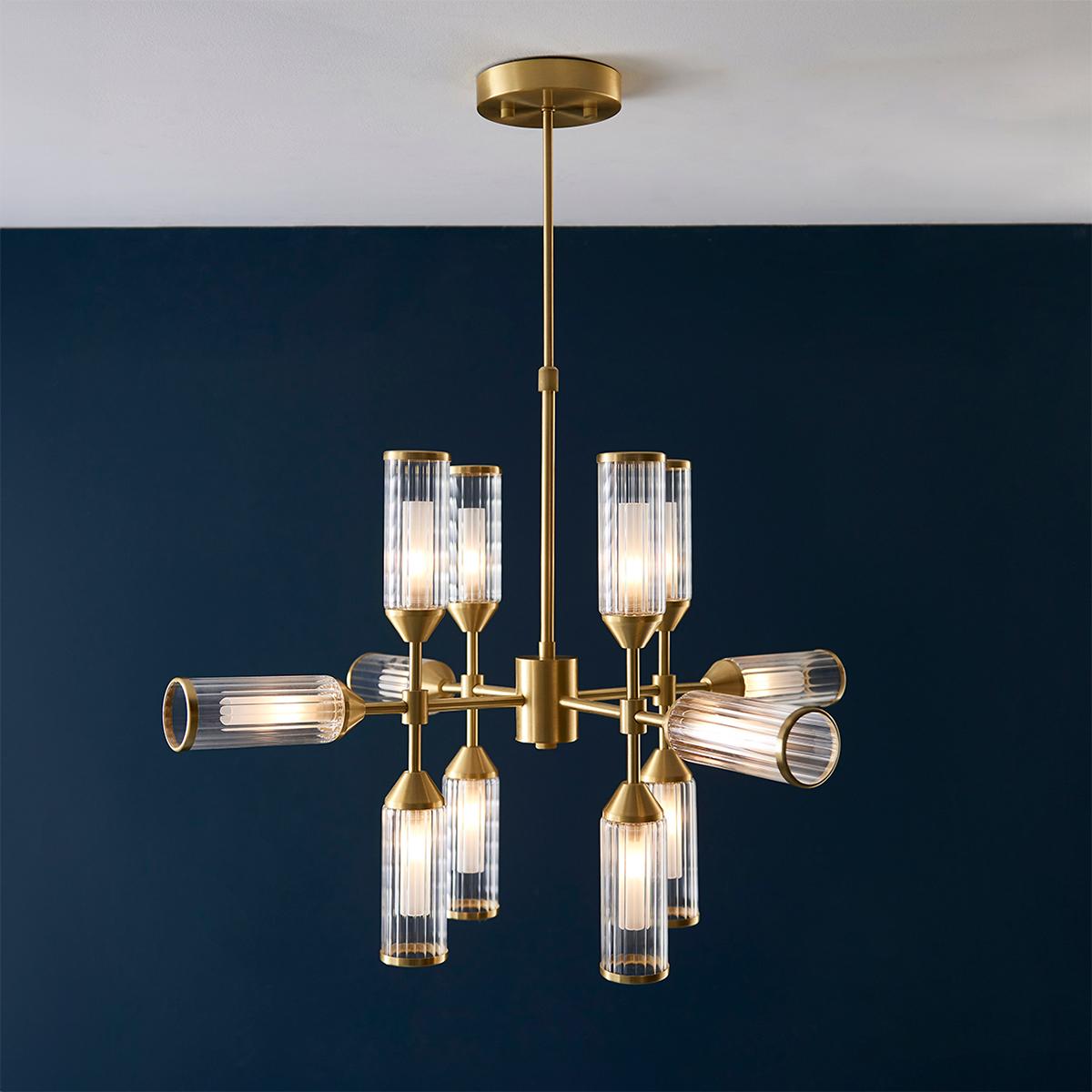 I love how the big glass shades on this chandelier bring a sense of modern elegance to a space. The brushed brass finish adds warmth and a touch of luxury, making it versatile for both contemporary and more eclectic interiors. It works particularly well in dining rooms, living areas, or high-ceilinged spaces where it can be a real focal point. For styling, keep the surrounding decor simple to let the chandelier stand out, and consider using dimmable bulbs to adjust the ambience. Pairing it with minimalist furniture or classic design elements can create a balanced and sophisticated look.