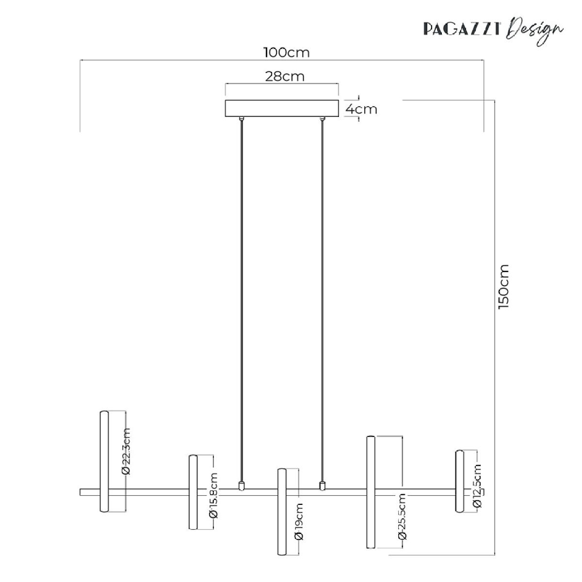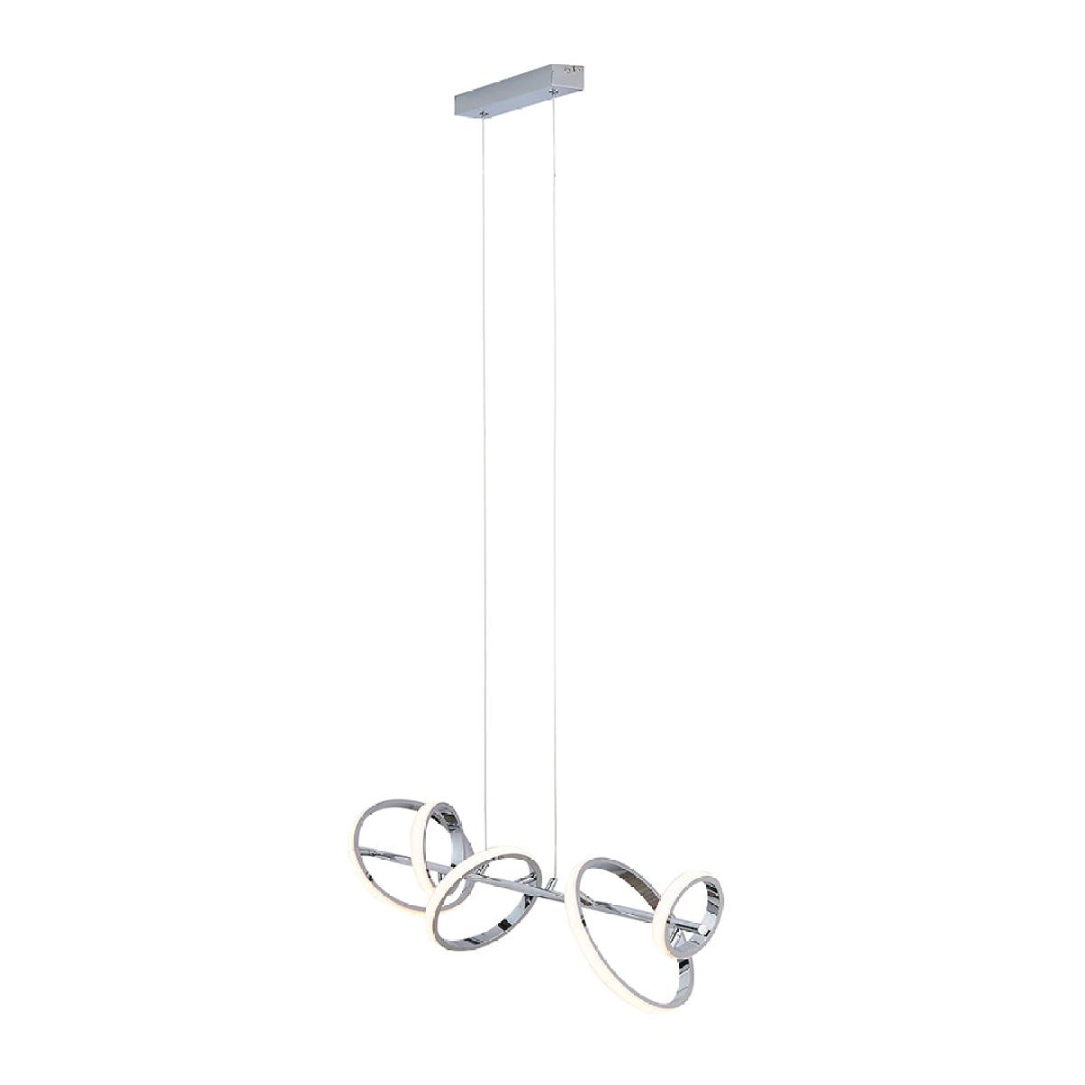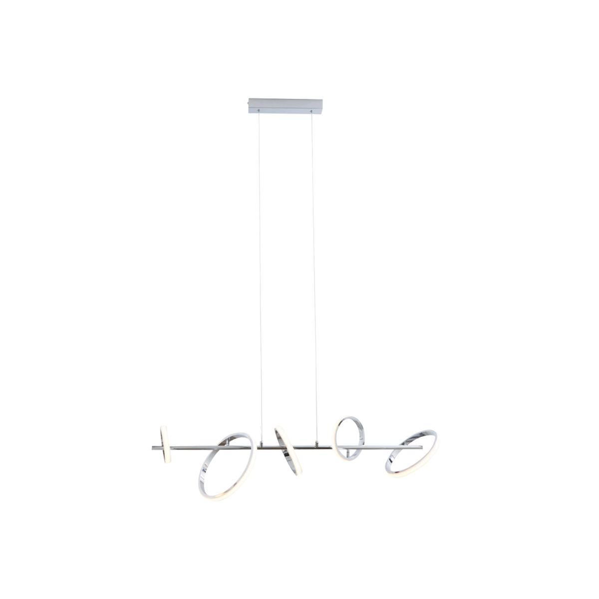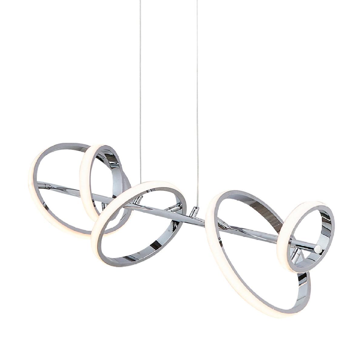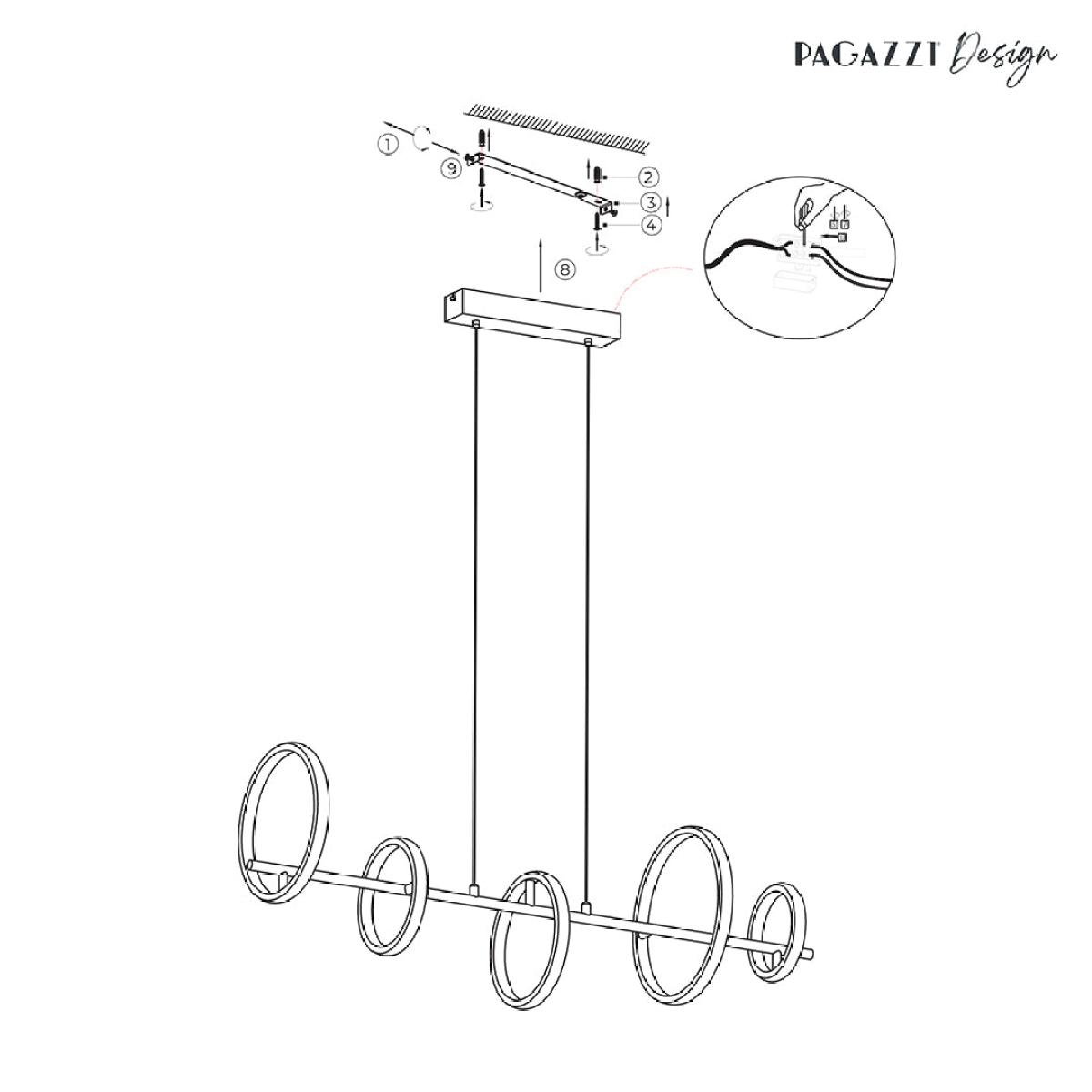 Bring cutting-edge style and radiant illumination to your space with the Juliana 5-Light Ring LED Pendant, an exclusive creation from Pagazzi Design. This ultra-contemporary ceiling light transforms any interior with its striking sculptural form and elegant polished chrome finish. Suspended from a sleek rectangular ceiling plate by fine silver wires, five independently rotating rings of varying sizes float effortlessly along a horizontal bar. Each ring is lined with an opal LED light strip on its outer edge, providing a soft yet powerful warm white glow (3000. K) that enhances both modern and minimalist interiors. With an impressive output of 2845 lumens, the Juliana pendant offers ample illumination for your kitchen island, breakfast bar, or dining table, while maintaining a refined and ambient atmosphere. The integrated LED technology ensures long-lasting, energy-efficient performance with no need for replacement bulbs.