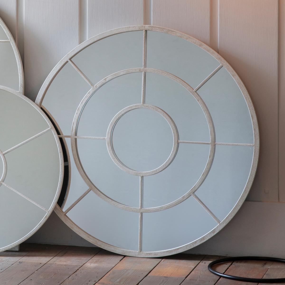 Our Julien White Metal Round Mirror will make a gorgeous addition to your home. Open your space with the illusion of extra windows indoors! This white round window mirror is inspired by old church windows and its sturdy metal frame is textured to give a slightly distressed look. It's all about the shabby chic style here - this is giving us elegant French cottage with lavender vibes! At 80 x 80cm in size, it's big enough to make an impact without overwhelming your room.