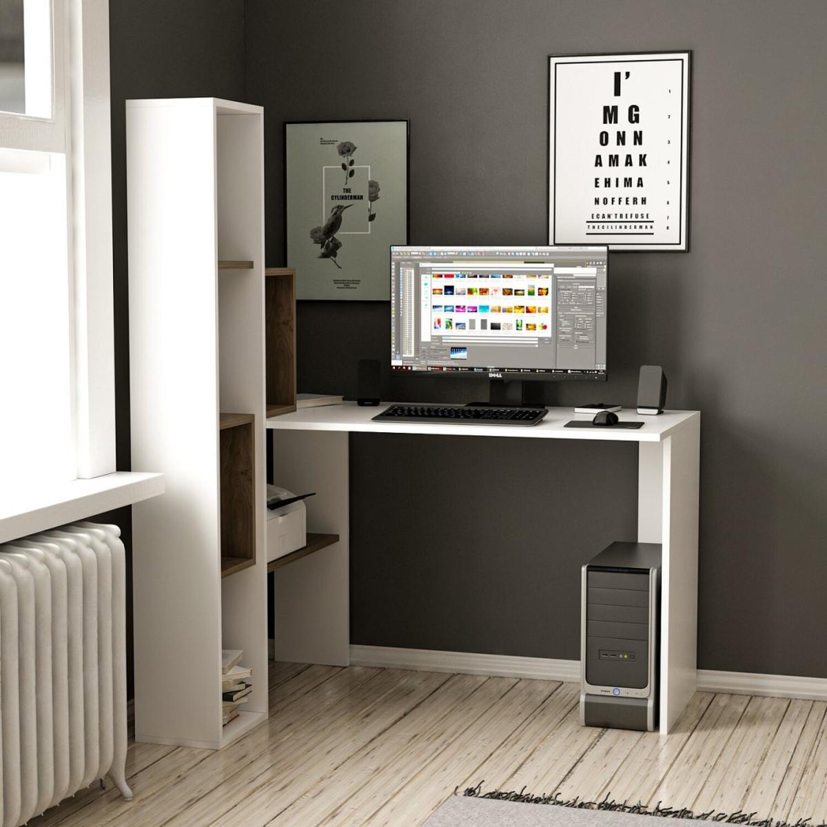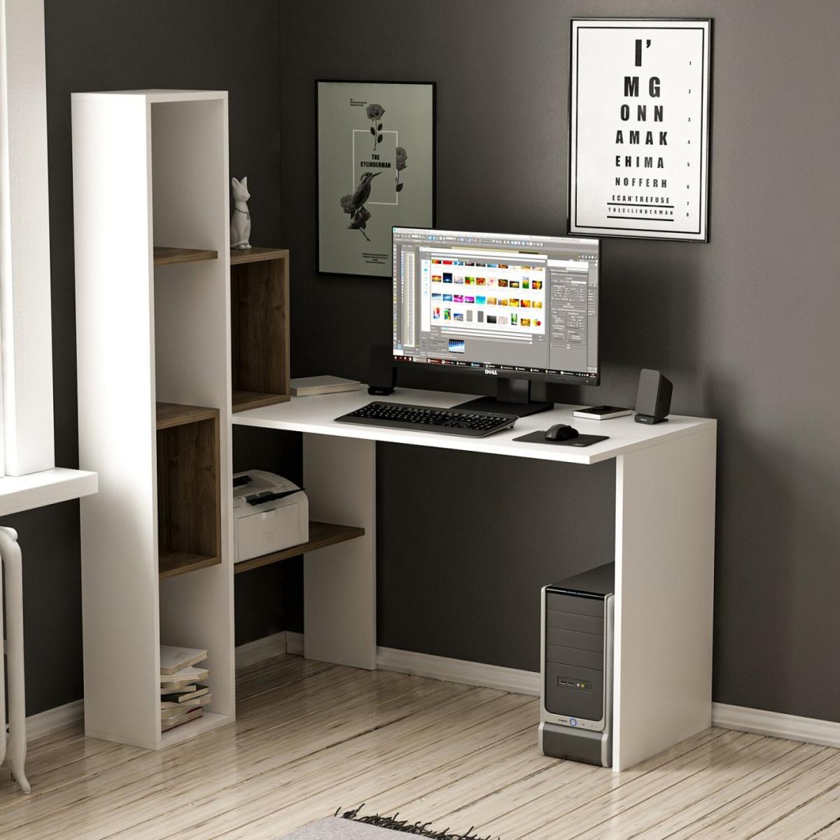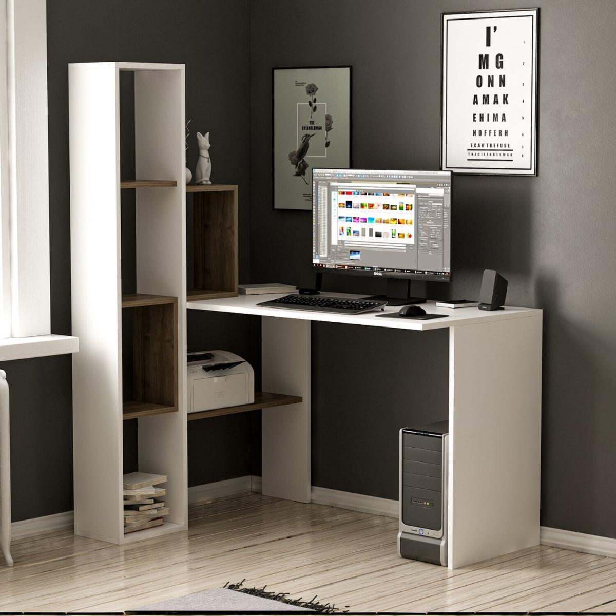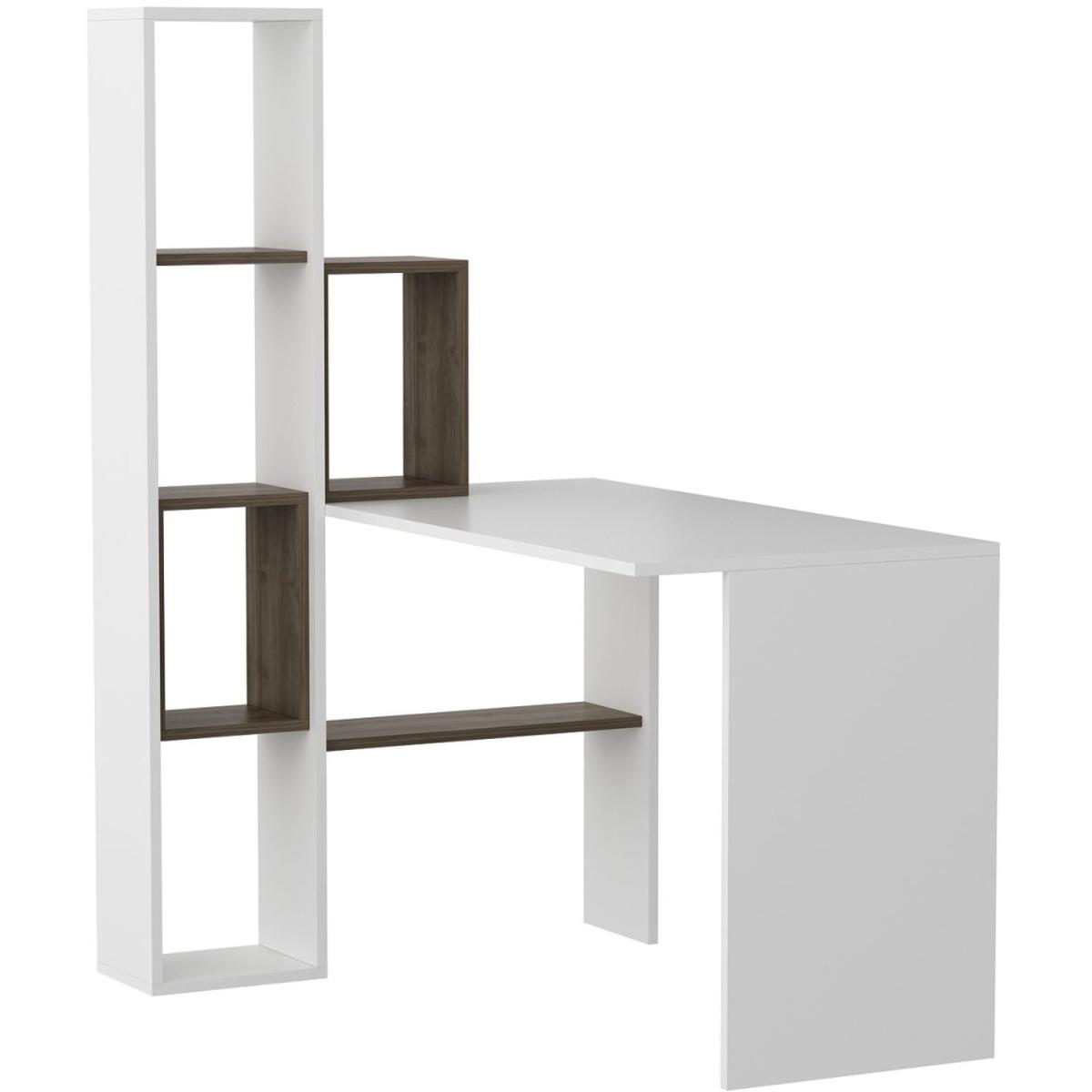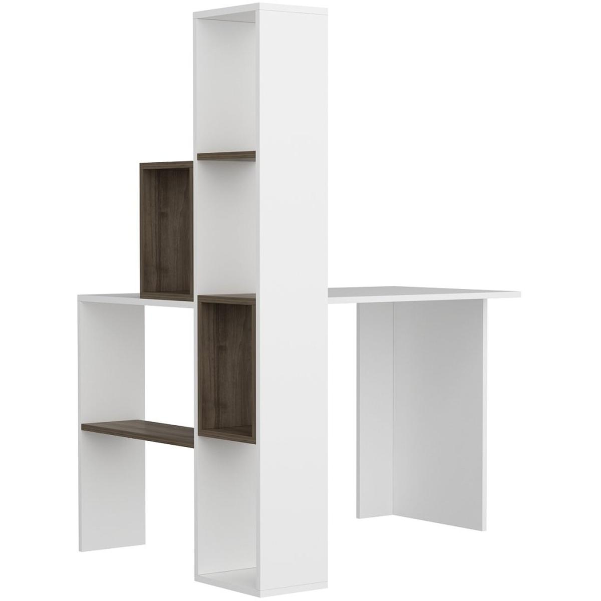 This unique, contemporary style desk and shelf unit offer the ideal combination for your home office. Finished on all sides in an elegant white.