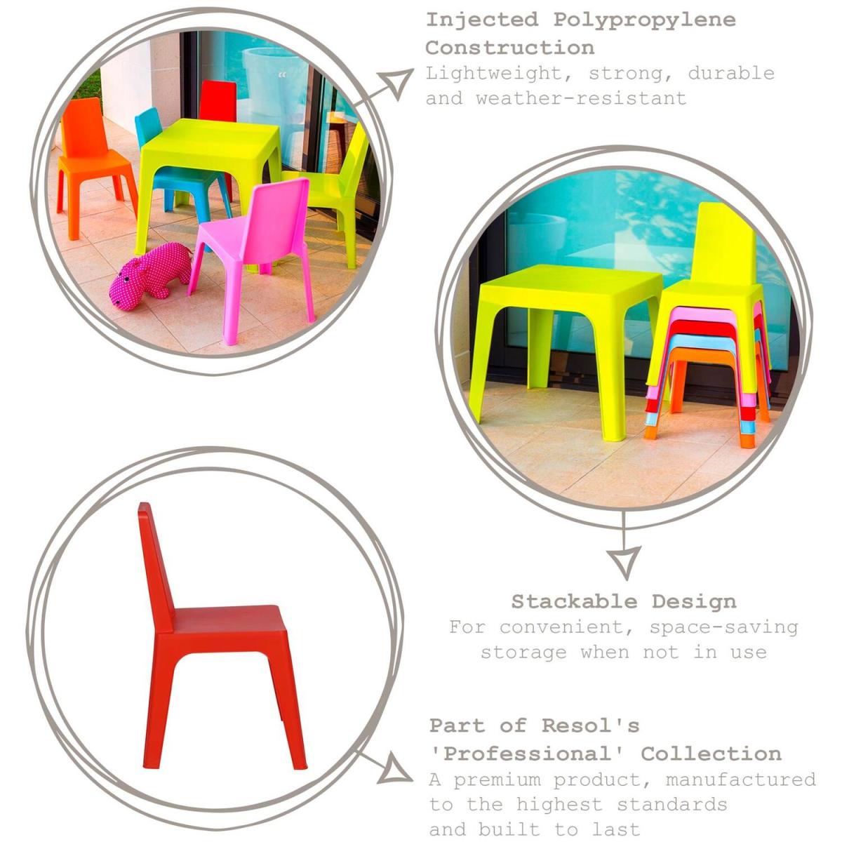Give your little ones a taste of the Costa Brava this summer with these Julieta Children's Play Chairs from Resol. Part of the brand's 'Professional' collection, these high-quality chairs have been purposefully designed to provide a premium, long-lasting addition to any playroom, bedroom or garden, with an injected polypropylene construction for maximum strength, support and stability. The vibrant colours are sure to capture any child's attention, creating an exciting and enticing space in which to play, learn and laugh. The easy-clean surface and in-built UV protection ensures those colours won't fade or degrade in the summer sun, while a stackable shape allows for easy, space-saving storage when not in use. With over 60 years of experience - and with an extensive catalogue of outdoor furniture on offer - Resol is a brand tailor-made to provide good times with good company in good garden places!