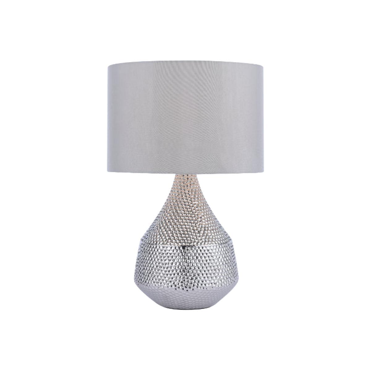 Contemporary touch table lamp boasting a silver glass base and taupe drum shade. Add an elegant touch to your home with the stunning Julietta table lamp. Featuring a hammered silver base and taupe circular shade. This table lamp is ideal for use on bedside, console and side tables. Contemporary touch table lamp boasting a silver glass base and taupe drum shade. Add an elegant touch to your home with the stunning Julietta table lamp. Featuring a hammered silver base and taupe circular shade. This table lamp is ideal for use on bedside, console and side tables.