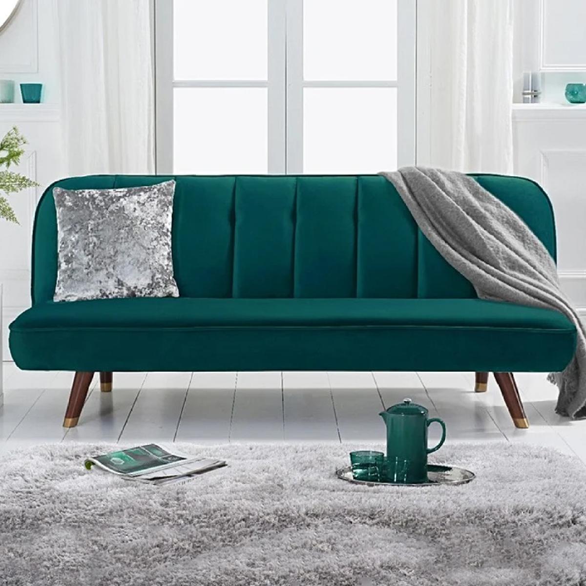 I love this green velvet plan for a sofa bed - it’s bold yet sophisticated, making it a real statement piece. The rich colour works beautifully in both modern and vintage-inspired interiors, especially when paired with brass accents or neutral tones to balance the vibrancy. For styling tips, I’d suggest using textured cushions or throws in contrasting colours or metallics to add depth, and placing it in a well-lit space to highlight its luxurious fabric. It’s practical too, offering versatility for smaller rooms or guest spaces, and its sleek, tapered legs keep the look fresh and contemporary. Overall, it’s an eye-catching, functional addition that can elevate a variety of interior styles.