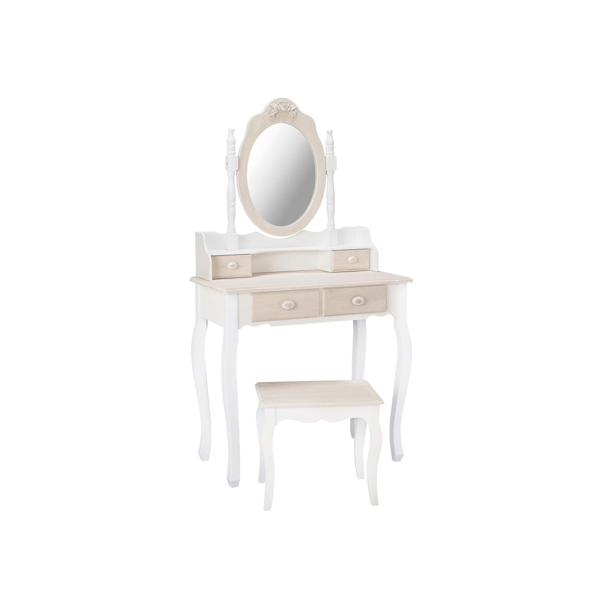 Bring the vintage style of the Juliette Dressing Table Base into your boudoir for the ultimate luxurious interior. Comprised of two oak drawers set in a soft white carcass, a distressed effect wooden top and drawer fronts, and accented with a delicate rose embossing on the single, cream knobs. Team this with the Juliette Dressing Table Mirror and Stool to create a beautiful, shabby chic arrangement with all the practicality required of contemporary vanity furniture.