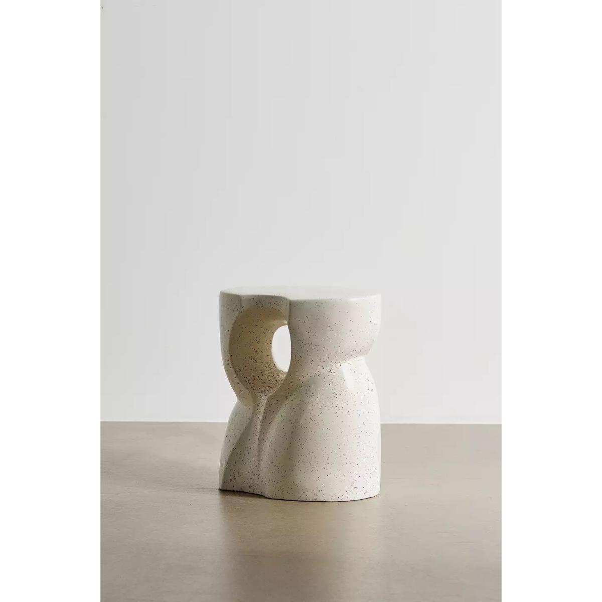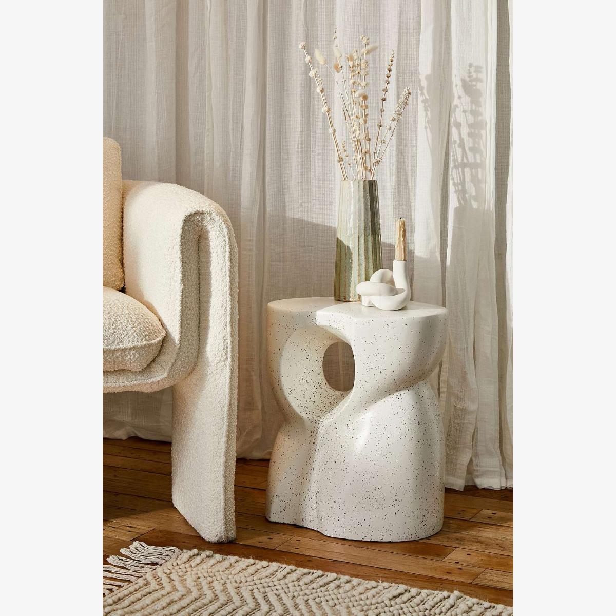 Suitable for use indoors or outdoors, this ornate side table is perfect for adding some unique silhouettes to your space. Sculpture-style piece is constructed from clay to create a sturdy space for your belongings, complete with artful swooping lines and curved asymmetrical detailing. Topped with a speckle-glazed, semi-matte finish. *Online return only. This item cannot be returned in-store. Please note furniture items currently cannot be shipped to Northern Ireland or The Republic of Ireland. Delivery of large furniture items may take 2-3 weeks and are therefore not eligible for Next Day Delivery.* **Content + Care** \- Clay, Glaze \- Wipe clean **Size** \- Dimensions: 38cm x 28cm x 45cm \- Weight: 27.56 lbs \- Shipping package dimensions: 47cm x 37cm x 55cm \- Shipping package weight: 31.97 lbs