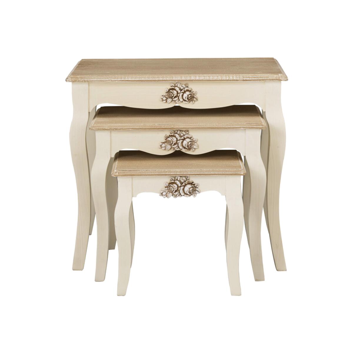 I love this set of nesting tables for their vintage-inspired charm and versatile functionality. The cream finish makes them an excellent choice for adding a soft, neutral touch to both traditional and modern interiors. They work particularly well in cosy living rooms or bedrooms, where they can serve as side tables, nightstands, or display surfaces. Practical styling tips include layering them with decorative lamps, books, or vases to create an inviting vignette. Because they nest neatly together, they’re perfect for small spaces or for when you need to optimise space without sacrificing style. Their timeless design ensures they’ll blend effortlessly with a variety of colour schemes and décor styles.