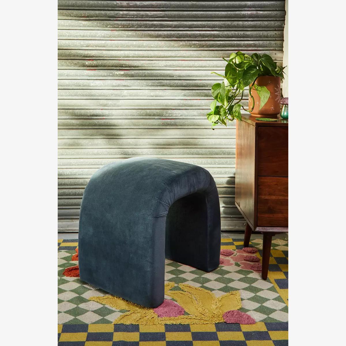 Upholstered cotton velvet stool from Urban Outfitter's Juliette range. Lightly cushioned design features all-over upholstery and pleated ruching for a luxe touch. *Online return only. This item cannot be returned instore. Please note furniture items currently cannot be shipped to Northern Ireland or The Republic of Ireland. Delivery of large furniture items may take 2-3 weeks and are therefore not eligible for Next Day Delivery.* **Content + Care** \- Mango wood, MDF, Cotton; Foam, Fibre fill \- Spot clean **Size** \- L: 50.8cm x W: 40cm x H: 47cm