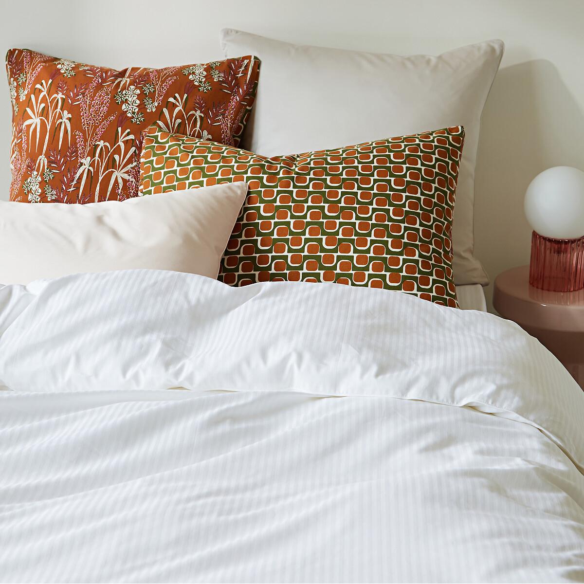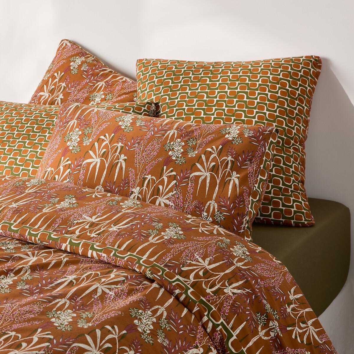 Botanical and graphic prints inspired by the 70s take pride of place on the Juliette pillowcase, in slightly crinkled washed cotton with a pretty contrasting ribbon finish. An exclusive design by La Redoute Interiors. The washed cotton has been delicately bleached during its manufacture. Soft, supple and comfortable, it softens over time. Its slightly wrinkled appearance is incredibly on-trend, and it does not require ironing. Product Details • 100% cotton • Washed cotton • 144 thread count • Botanical print front and back • Contrasting ribbon finish with retro print. As the seasons change, add your own personal touch by mixing the Juliette range with our range of Scenario plain bed linen. Care Advice • Machine washable at 60°C • By washing your laundry at 40°C instead of 60°C, you limit energy consumption. Dimensions • 50 x 70cm: Rectangular pillowcase • 63 x 63cm: Square pillowcase • OEKO-TEX® Standard 100. Standard 100 certification by OEKO-TEX® tests textile products for harmful substances via an independent, international label.