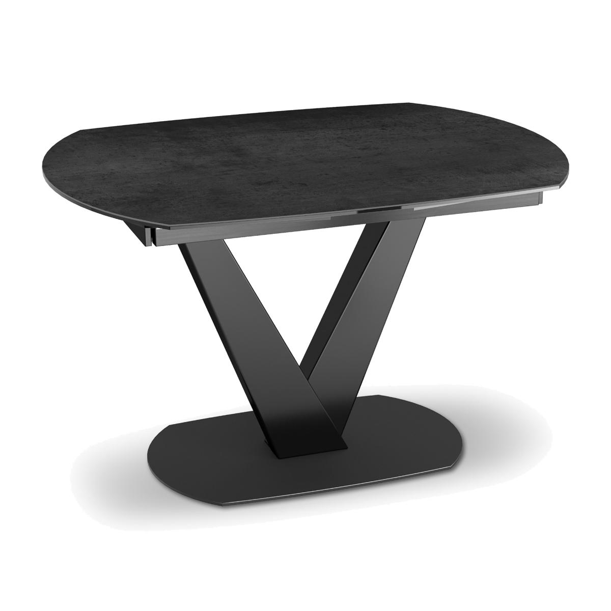 Impress your guests with this beautiful swivel-top dining table – simply rotate the top, and the table extends. In ten stunning ceramic finishes and only at Furniture Village. Why you'll love it Part of our Modern Dining Collection. Sleek modern style for your on-trend contemporary home. This exceptionally well-crafted extending dining table has a curved boat-shaped top. Choose from 10 beautiful ceramic finishes, including marbled ceramic. Such attention to detail – the marble patterning always matches whether the table is extended or closed. So easy to look after. Ceramic is scratch-resistant, chip-resistant and heat-resistant. Bold metal pedestal base with a matt black lacquered finish. Ergonomic design allows you to seat more diners in comfort. The table top of this swivel dining table rotates to extend. Available in 3 sizes. Only at Furniture Village. This swivel extending dining table is part of our Julio range. What you need to know Small swivel dining table seats 4 closed and 6 when extended. Medium swivel dining table seats 6 closed and 8 when extended. Large swivel dining table seats 8 closed and 10 when extended. Top is 3 mm ceramic layer on 6 mm glass layer. Steel legs with a lacquered finish. Please note that the ceramic table top is not 100% heatproof. We recommend using coasters and placemats at all times. Wipe clean with a damp cloth. Dry with a soft duster. Do not use abrasive cleaning products. Part of our Julio collection of stylish and space-saving modern dining room furniture.