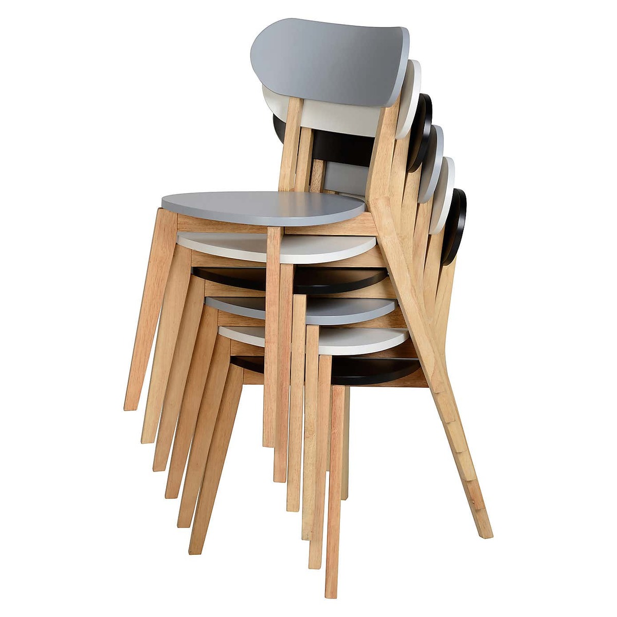 The Julian set of 2 dining chairs boast a modern, clean style, perfect for compact spaces and is available in a choice of black, grey or white colourways. These self-assembly chairs are crafted from solid wood and designed to be stacked together so they can be easily stored away when not in use.
