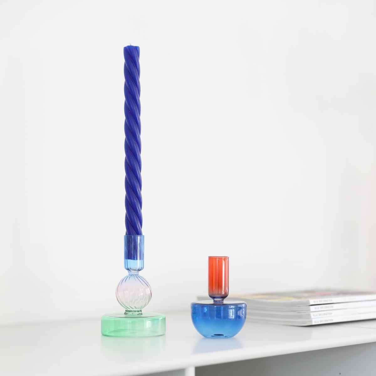 Delightful and bold, these glass candlesticks play with colour and transparency. The simple geometric shapes and on-trend tones come together to create wonderfully graphic compositions.
