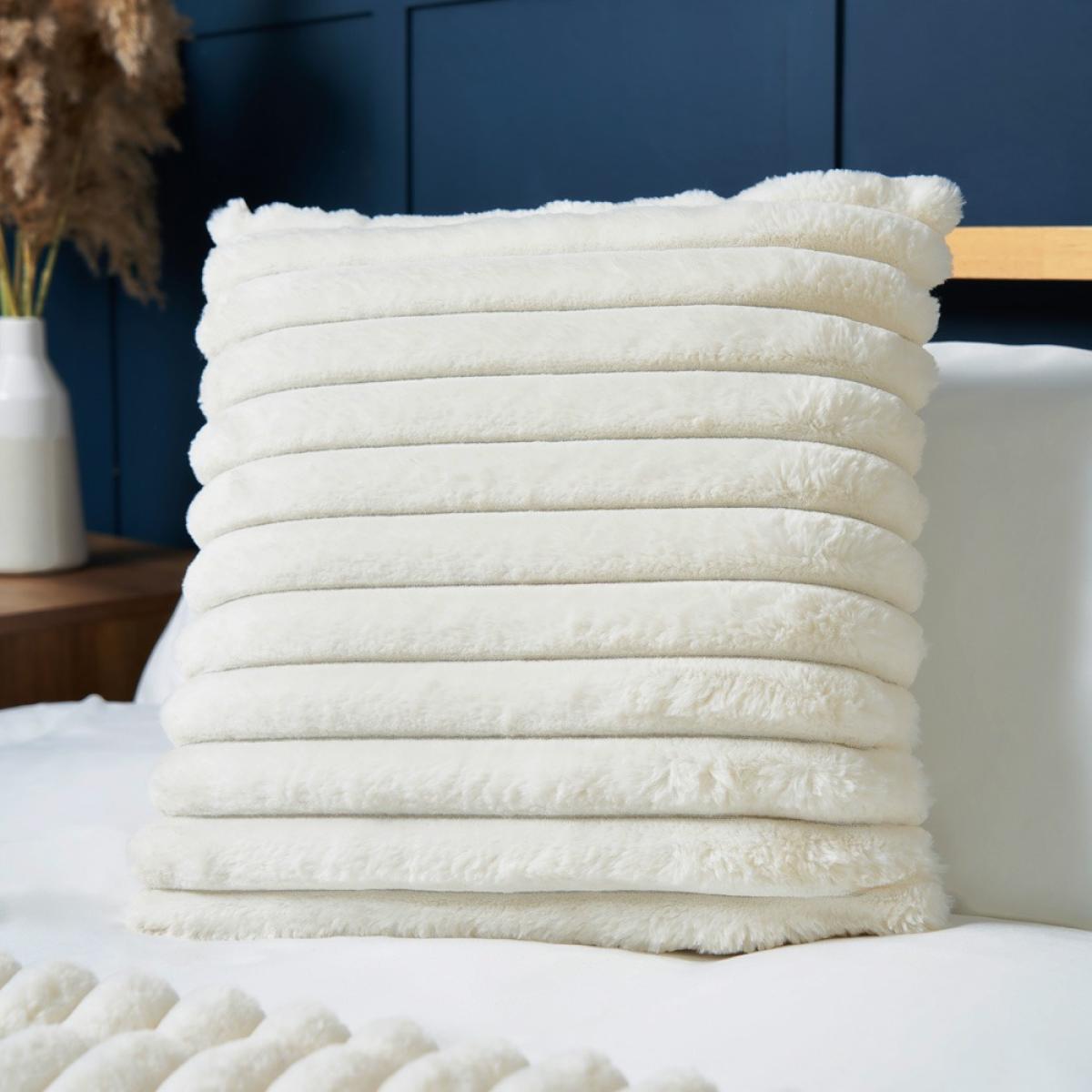 Jumbo Cord 45cm Cushion with Plain Velvet Backing, Cream