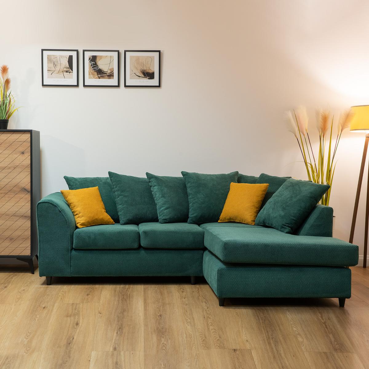 Jumbo Grid Corner Sofa with Padded Cushions - Green / Right-hand