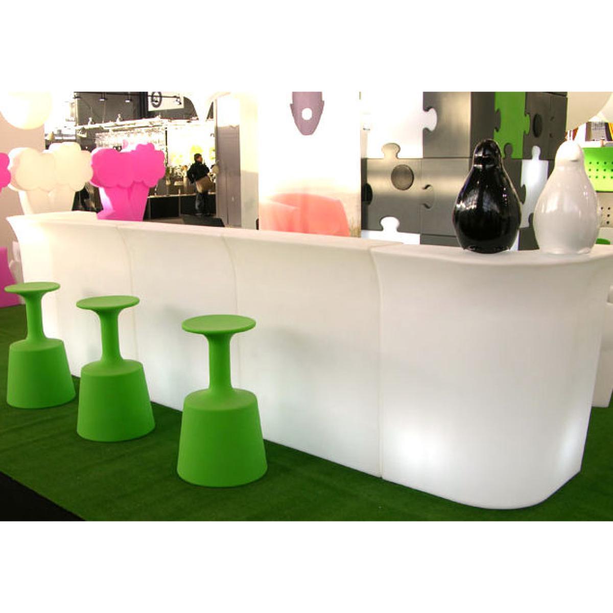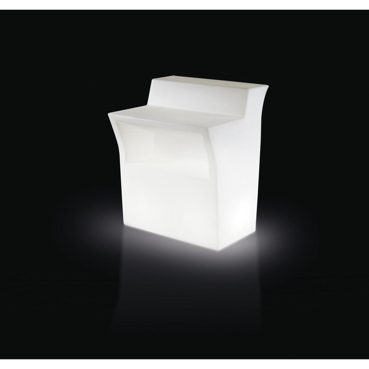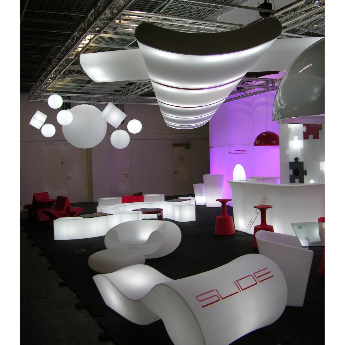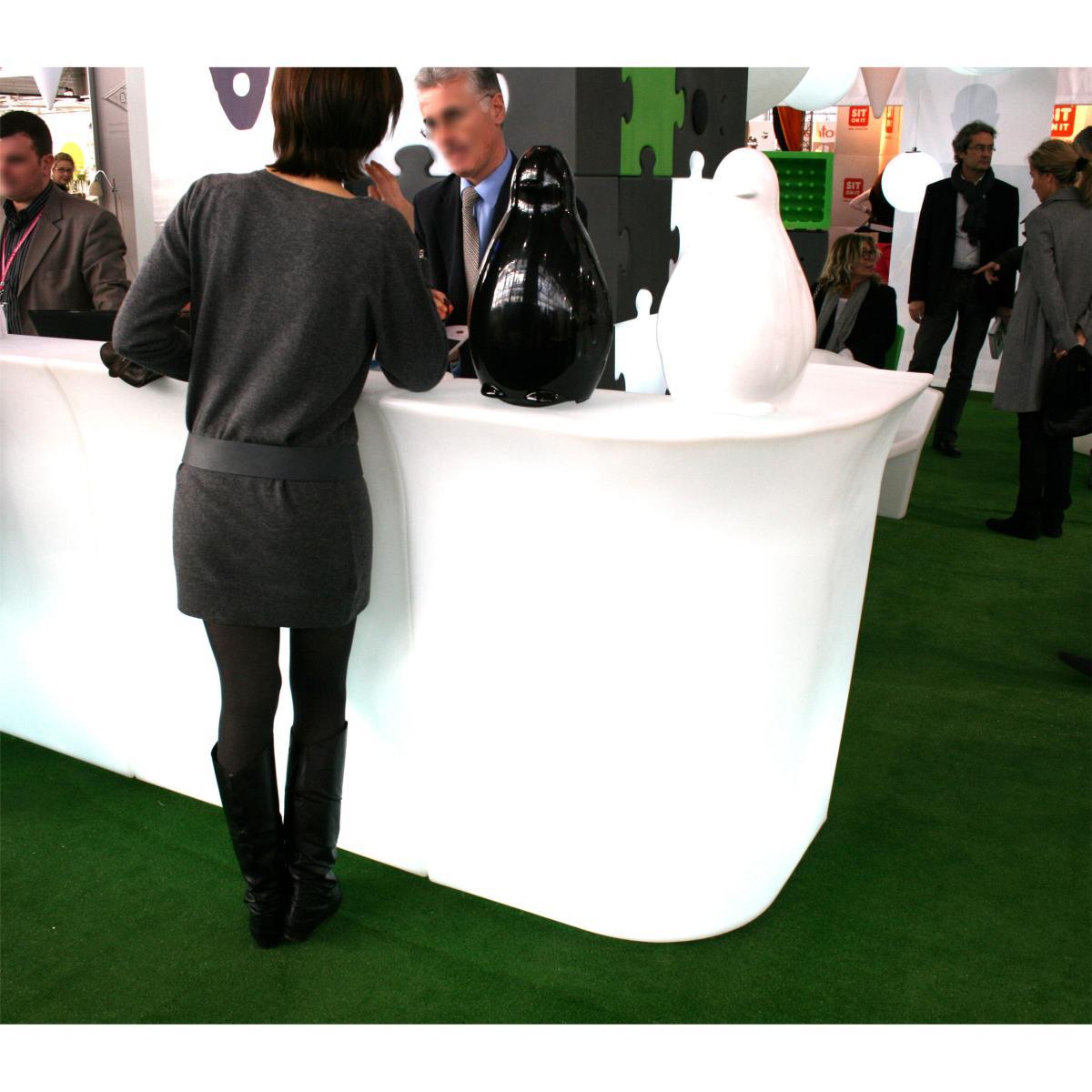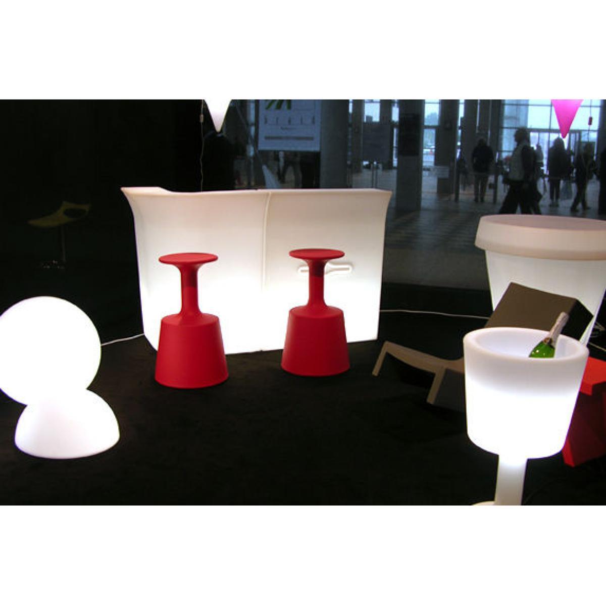 This luminous bar creates a lounge and modern ambiance in your living room, garden, terrasse, around your swimming-pool. The pure shape broadcasts a sweet and sensual light. Ideal for your garden parties. For a coloured light, you can put coloured bulb inside. Made of polyethylen, Jumbo Bar is functional : it is resistant, light and there is a storage space to stock bottles and glasses. You can fit together several Jumbo bar and Jumbo Corner (corner elements).