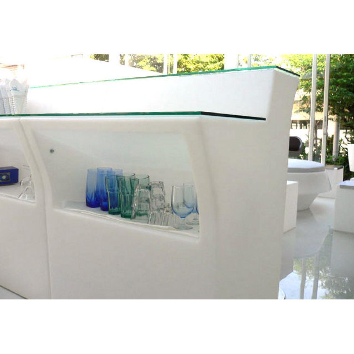 I love the Jumbo Luminous bar for its sleek, contemporary design that instantly elevates a space with a modern edge. It works particularly well in minimalist or industrial interiors, where its illuminated quality adds a unique focal point and ambient glow. For styling, consider pairing it with metallic accents or marble countertops to enhance its contemporary appeal. Practical tips include using it as a statement piece in home bar areas or even in commercial settings like trendy cafes and lounges, where its glow can create an inviting atmosphere. Its luminous feature not only adds visual interest but also helps in defining social spaces without the need for additional lighting, making it a versatile and stylish choice for any modern interior.
