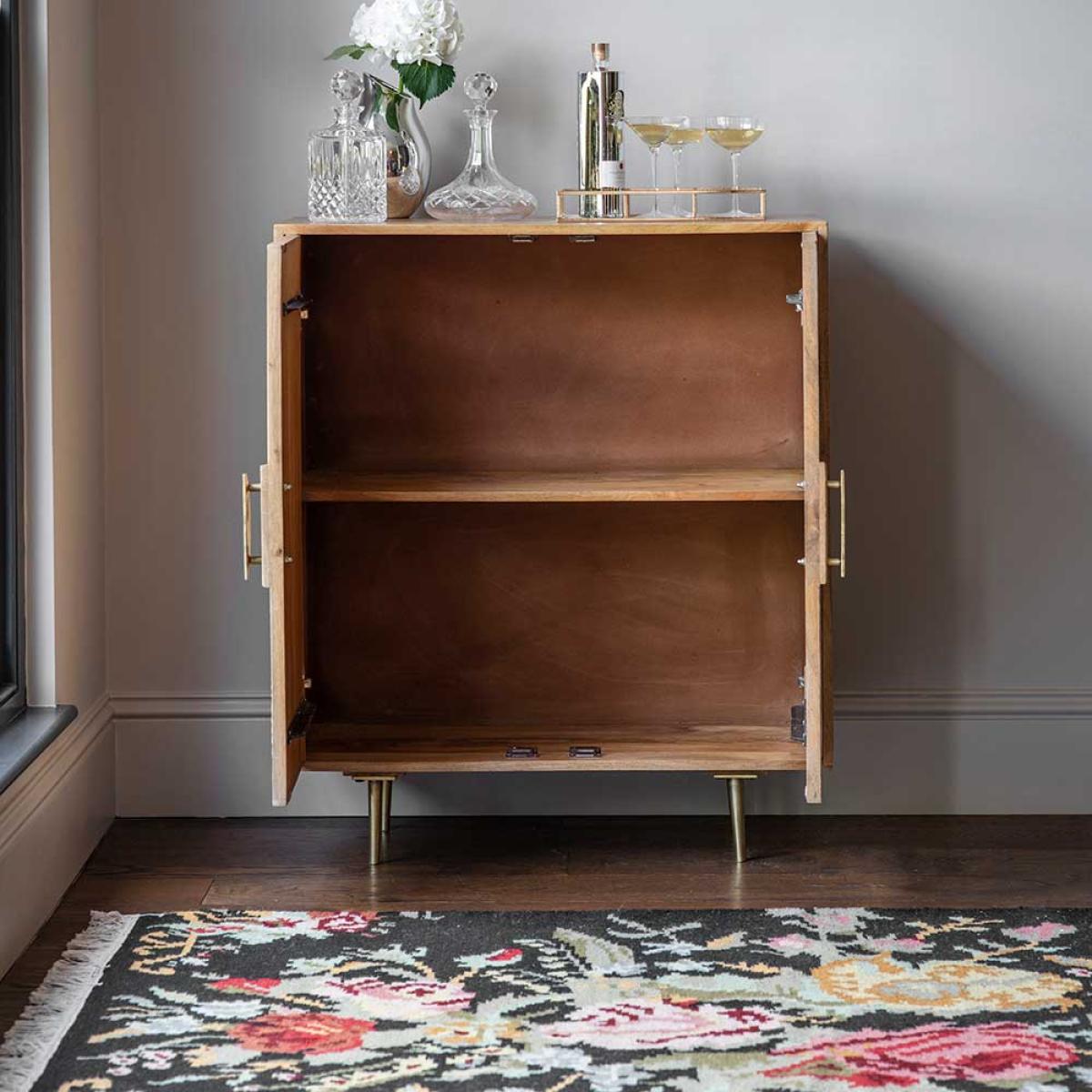 Eye-catching with an Art Deco feel, our new Jumeirah Sideboard is practical and striking with its natural mango wood finish finished with brass plated legs and handles. There’s plenty of storage space inside with room for books, CDs, DVDs, games, paperwork, glassware, crockery or cutlery – anything you need in fact, for the living area, dining room or open-plan space. It could also be used in the hallway or home office when additional storage is required.