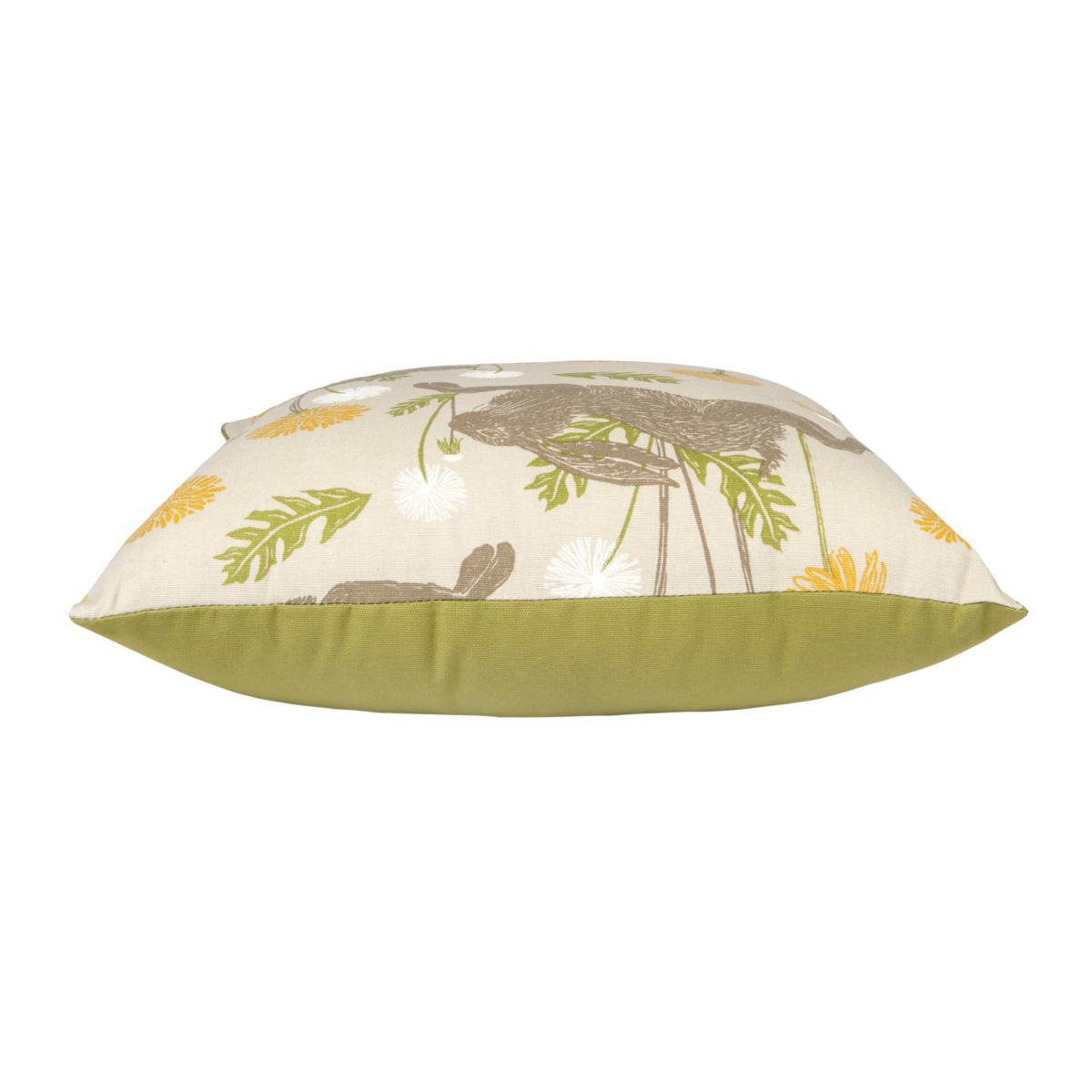Printed with a design featuring jumping hares, this square cushion cover is bright and colourful in design and has been made from 100% natural cotton. Complete with a zip to securely hold any filling, the cover is backed with a plain, contrasting fabric. This cushion cover is suitable for a 45cm x 45cm insert.