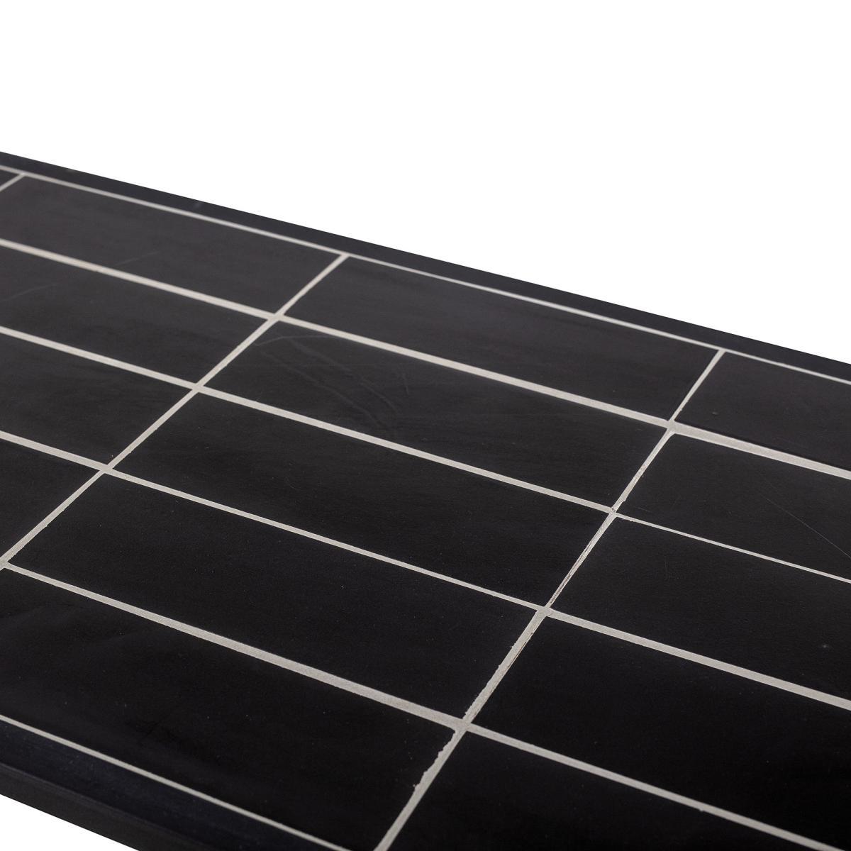 The June console consists of two tops made of a superb mosaic of black ceramic tiles. The multiple rectangular tiles separated by white joints form a rhythmic, graphic geometric pattern. The mineral material is tactile and authentic. The fine black metal structure presents strict, straight shapes. Each shelf can support a weight of 20 kilos.