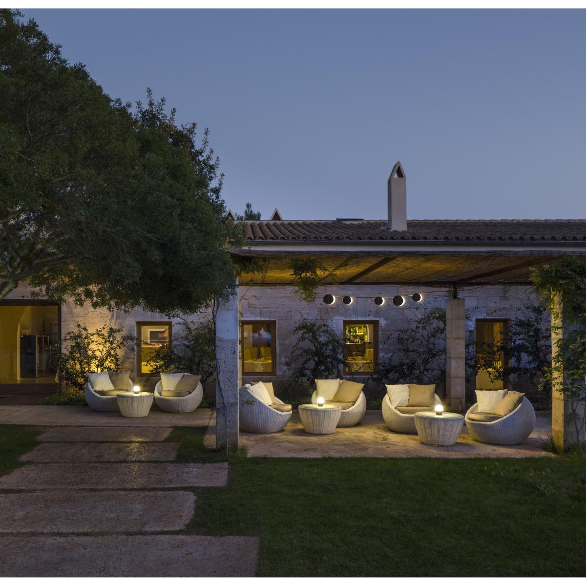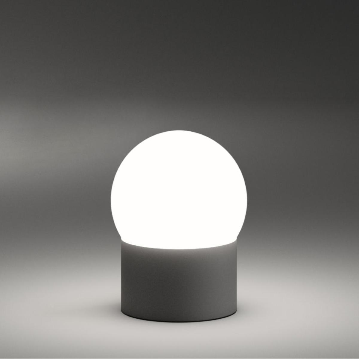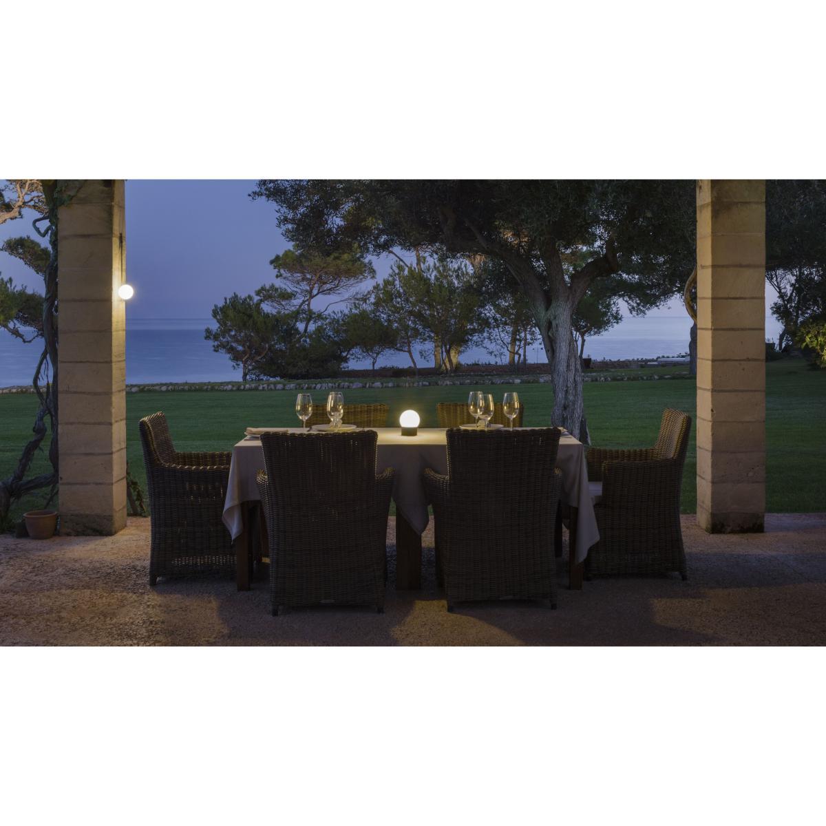 Very elegant, this small wireless lamp is in the form of a blown glass luminous globe with an LED light source. The base is in matt dark brown lacquered aluminium. This portable lamp is charged with a removable power cable. The intensity is adjustable and the battery life is 6 to 18 hours (depending on the intensity). This wireless lamp is easy to carry and can be moved around as you wish. Placed on the table during a meal or an aperitif, in a living room or on the terrace, it provides a soft and sensual light. PLEASE NOTE. This lamp has an IP20: it cannot be used outdoors in case of rain or very humid atmosphere causing condensation. Store indoors after use.