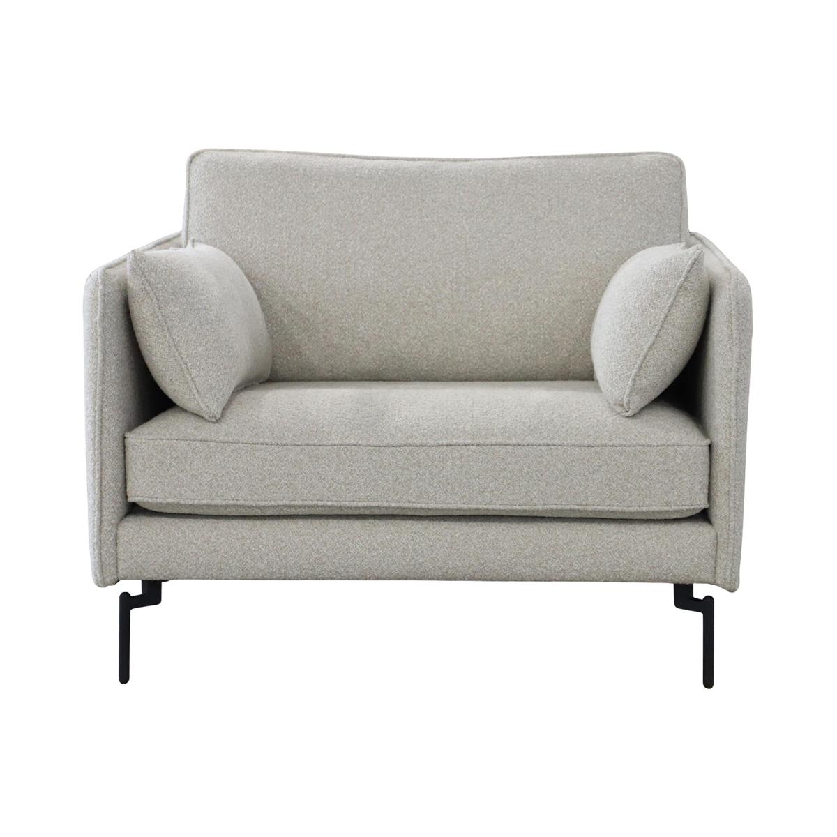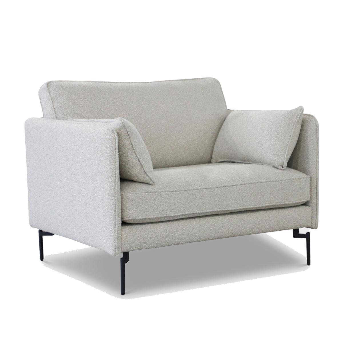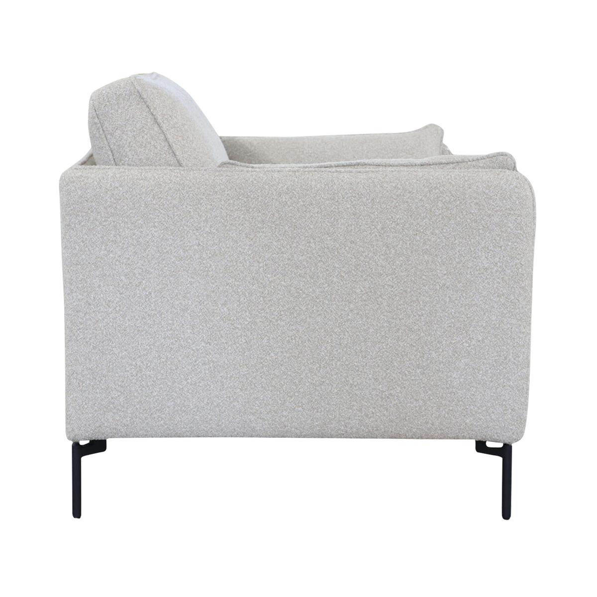 Enhance your space with our grey fabric armchair, featuring distinctively designed matt black metal legs for a modern, eye-catching touch. Its soft, durable fabric offers cosy comfort for reading, relaxing, or unwinding, while the sleek silhouette effortlessly complements any decor. Stylish yet practical, this armchair combines contemporary flair with everyday comfort, making it a standout piece in any room. Add a subtle statement of sophistication and warmth with this thoughtfully designed accent chair.