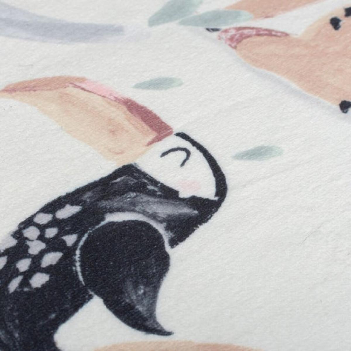 * Faux Fur * Machine Washable * Inspiring Design Spark your little one’s imagination with the Jungle Friends Washable Faux Fur Rug. The vibrant pattern of jungle animals is finished with a hand drawn effect to enhance the friendly characters. Made from a super soft faux fur, this rug is perfect for any of life’s spills and messes, simply pop in the washing machine for a good as new look.**Care Instructions:**Shake or vacuum to remove and loosen fibres, dirt and debris using a nozzle attachment. In the case of spillage, blot with a clean cloth. Place into the washing machine on a gentle cycle at 30 degrees and air-dry flat. We recommend removing promptly from the washing machine to avoid creases.